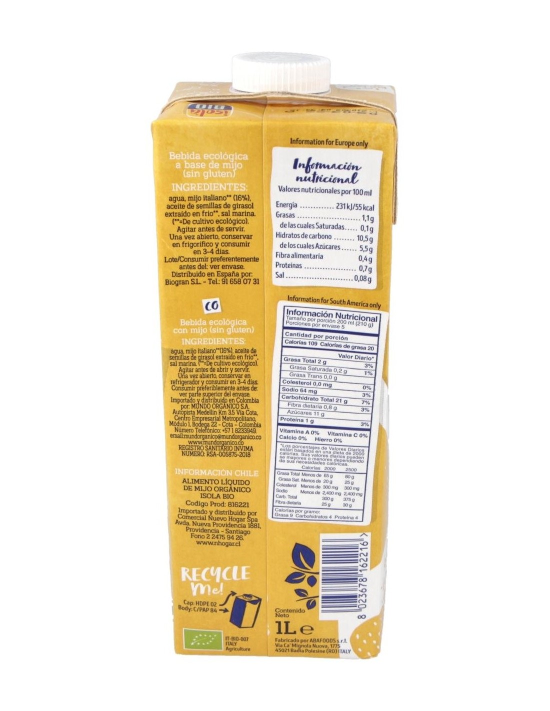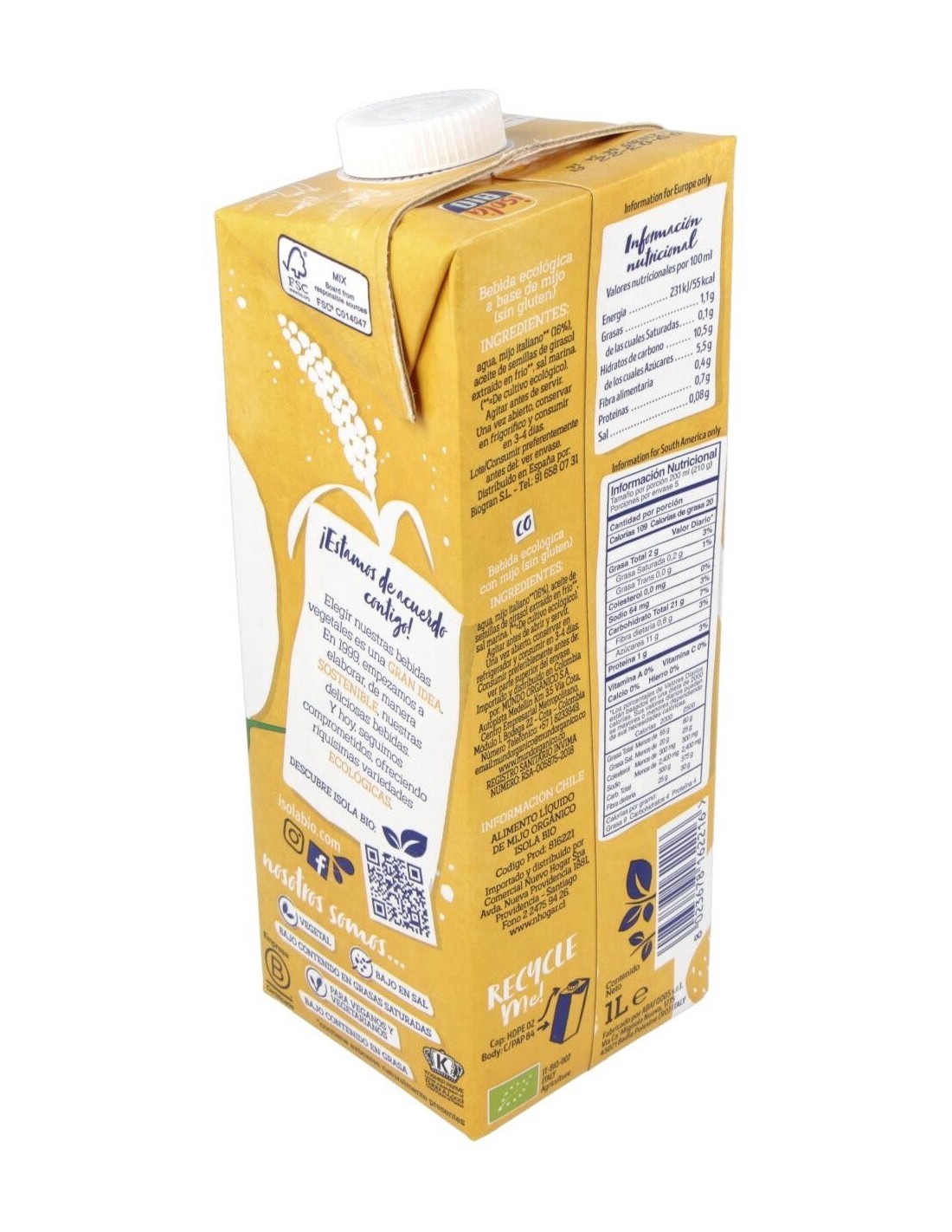 La Bebida Vegetal De Mijo 1Lt de Isola es una alternativa natural para quienes buscan opciones de bebidas vegetales con un perfil nutritivo equilibrado. Está diseñada para personas que prefieren productos elaborados a partir de ingredientes vegetales, ideales para complementar una dieta variada.