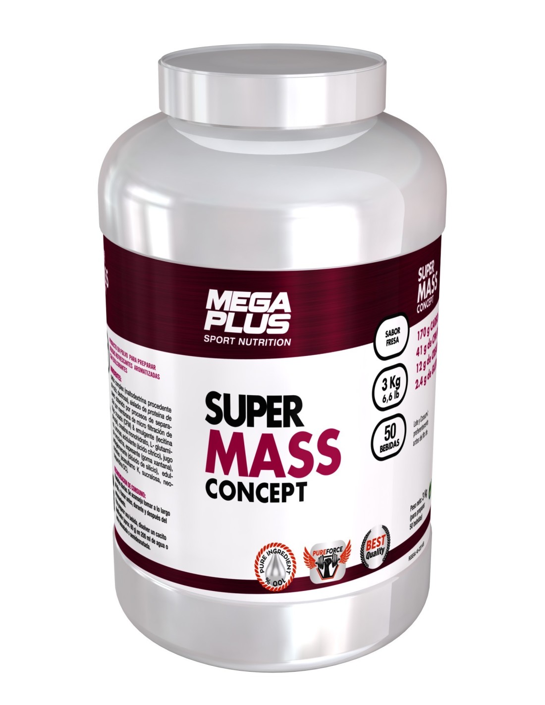 Super Mass Concept Choco 3kg de Mega Plus es un suplemento nutricional diseñado para personas que buscan apoyar el aumento de masa corporal de manera controlada y nutritiva. Su fórmula está pensada para quienes requieren un aporte calórico adicional con una mezcla equilibrada de macronutrientes.