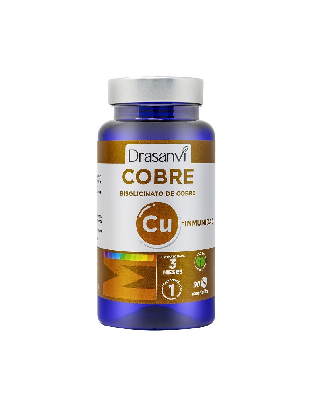 El Cobre es un mineral esencial para la vida y relacionado con numerosas funciones en el organismo, desde la función mantenimiento del tejido conectivo hasta el transporte de hierro por el organismo.No obstante hay que elegir una fuente de Cobre con alta biodisponibilidad, por esa razón decidimos añadir el Cobre en forma de Bisglicinato, el cual se ha demostrado que se absorbe un 4 veces más que otras fuentes de zinc más utilizadas como el Sulfato de Cobre.Composición activa por comprimido:2.500 mcg de cobre.Ingredientes:Agente de carga (Celulosa microcristalina), Bisglicinato de Cobre (Cobre 10%), Agente de carga (Sal magnésica de ácido graso), Antiaglomerante (Dióxido de silicio)Modo de empleo:Tomar 1 comprimido al día, junto a la comida.Presentación:Envase de 90 comprimidos.Recomendaciones y advertencias:Producto vegano.