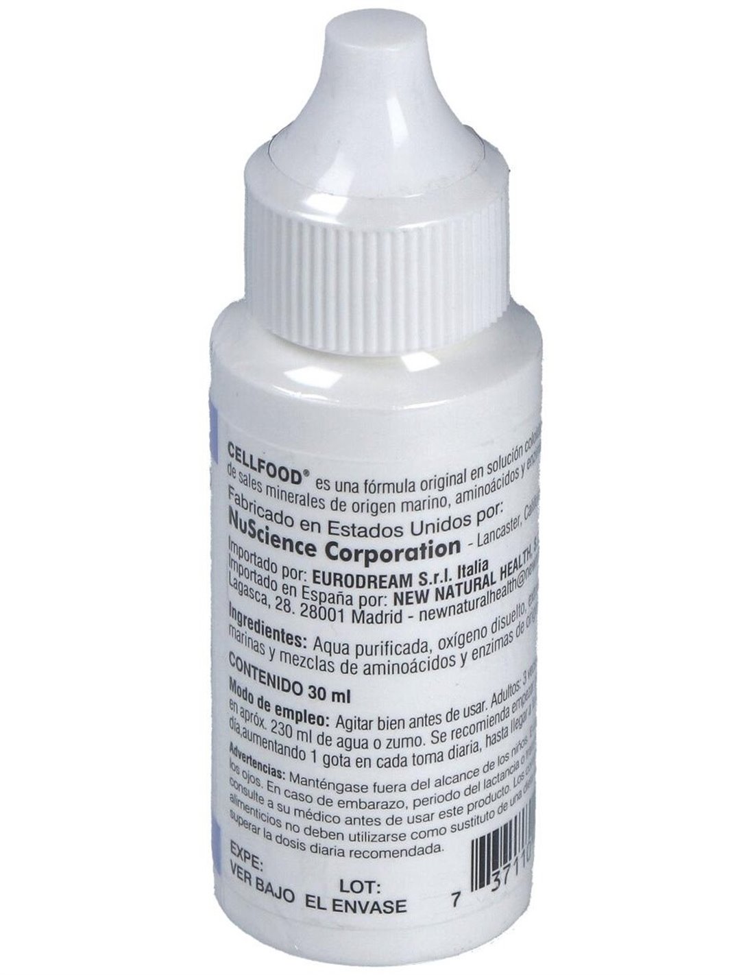 Fórmula original en solución salina que contiene oxígeno disuelto, electrolitos, 78 minerales en forma iónica, 34 enzimas y 17 aminoácidos, en trazas medidas en ppm. Cellfood Solución Salina Coloidal es un producto altamente mejorado y útil debido a su fórmula líquida única que contiene una amplia gama de componentes esenciales para el cuerpo humano. Esta solución contiene disuelto de oxígeno, electrolitos, 78 minerales en forma iónica, 34 enzimas y 17 aminoácidos. Estos componentes trabajan juntos para ayudar a proporcionar al cuerpo una fuente de oxígeno y un sistema de transporte nutricional durante todas las células, ayudando a limpiar y tonificar el cuerpo. El uso regular de Cellfood Solución Salina Coloidal puede proporcionar una serie de beneficios para el organismo. Este suplemento es especialmente útil para las personas que hacen deporte, ya que puede ayudar a la energía y el rendimiento deportivo al oxigenar las células del cuerpo y ayudar a equilibrar el metabolismo. También puede apoyar la normal función inmune, desintoxicar el cuerpo y aumentar la biodisponibilidad de otros nutrientes esenciales.
