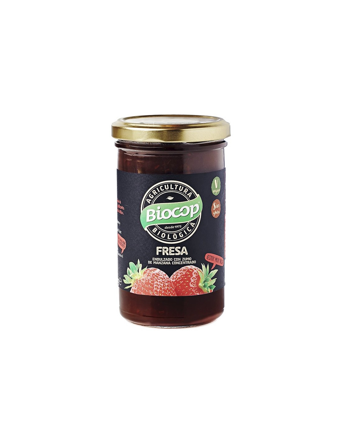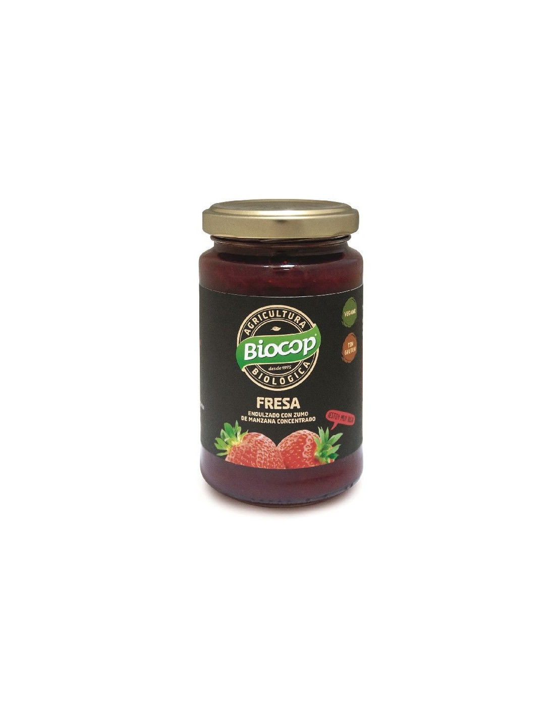 Ingredientes:Fresas* (65%), zumo de manzana concentrado* (41.6%), puré de manzana*, gelificante: pectina, corrector de acidez: ácido cítrico. (*) De cultivo ecológico.Valor nutricional por 100 gramos: