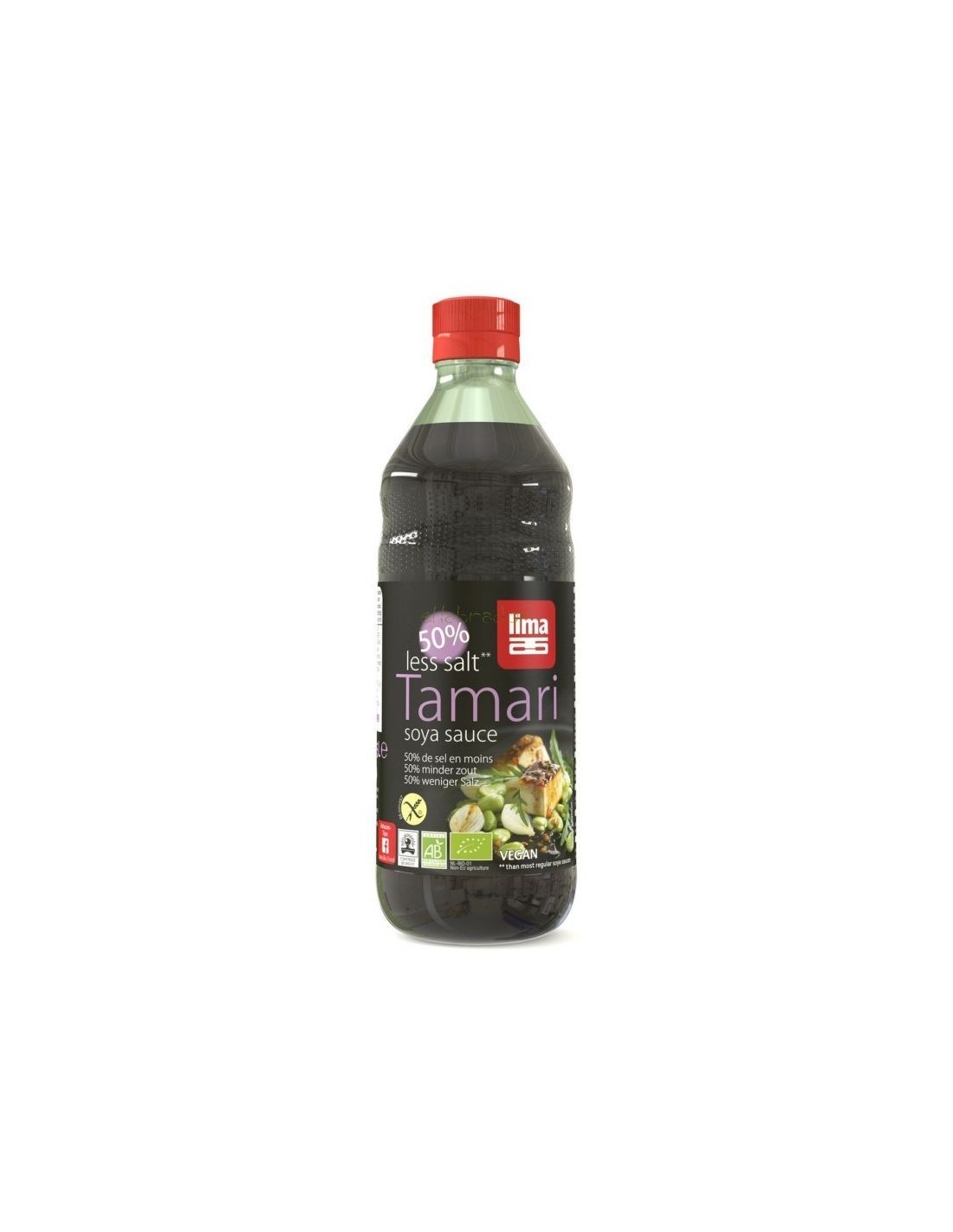 Ingredientes:Agua, soja*, sal marina 6,7%, alcohol*, corrector de acidez: ácido láctico, vinagre de arroz*, A. oryzae. (*) Cultivado orgánicamente.Val
