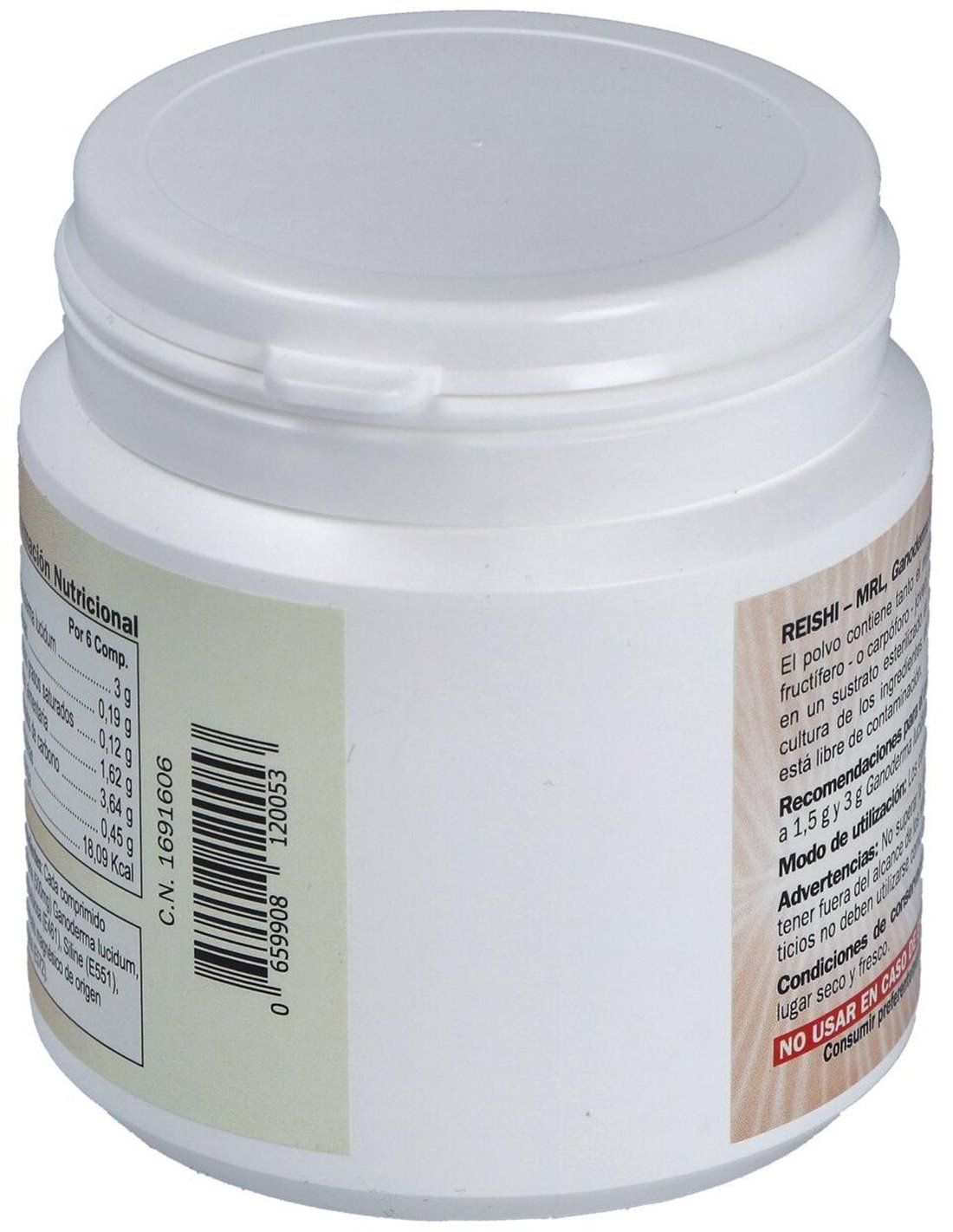 Por 1 comprimido: Biomasa Ganoderma lucidum ... 500 mg Metilcelulosa, sílice, estearato magnésico de origen vegetal.