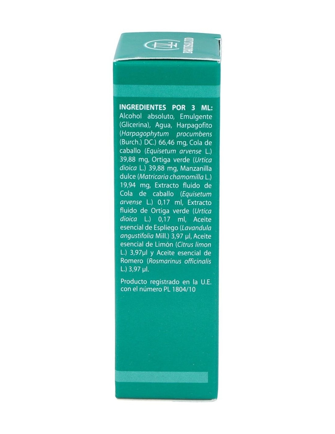Además de la clara acción antiinflamatoria del harpagofito, en esta mezcla se potencian los efectos regeneradores con un aporte mayor de silicio procedente de la cola de caballo y de los minerales de la ortiga verde. Composición: