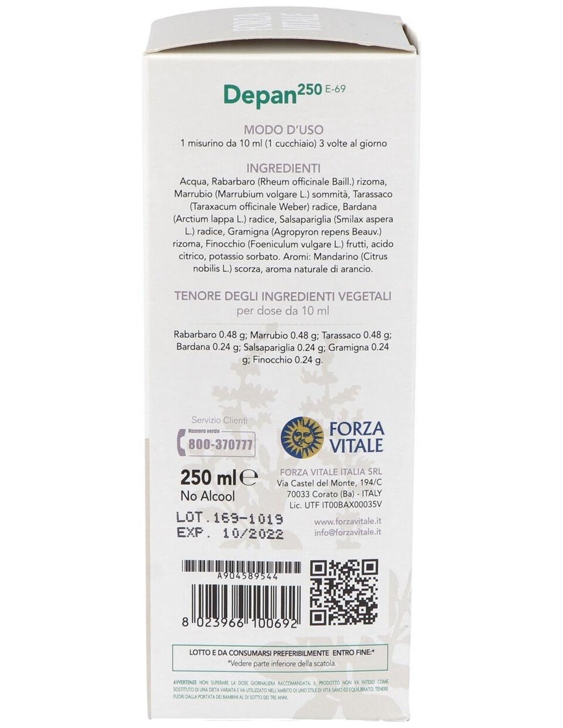 Ingredientes:Agua, Ruibarbo (Rheum officinale) raíz, Marrubio (Marrubium vulgare) sumidades, Diente de león (Taraxacum officinale) raíz, Bardana (Arctium lappa) raíz, Zarzaparrilla (Smilax aspera) raíz, Gramínea (Agropyron repens) raíz, Hinojo (Foeniculum vulgare) frutos, ácido cítrico, potasio sorbato. Ingredientes activos por dosis diaria (24 ml):