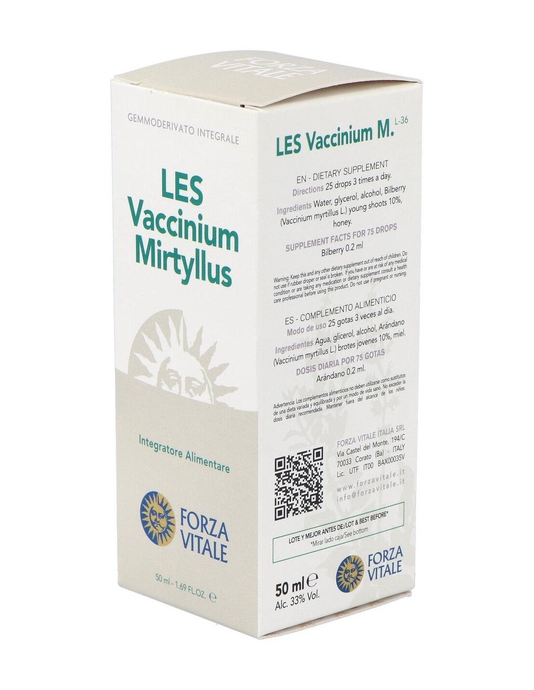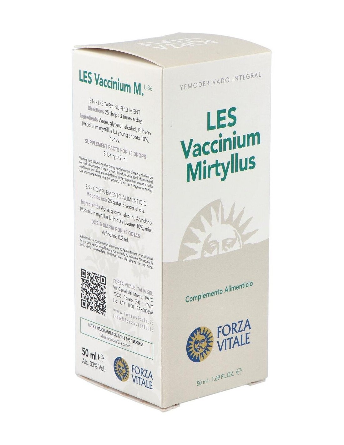 Los brotes de Vaccinium myrtillus posen un organotropismo dirigido al intestino, al aparato urinario, al sistema vascular, al tejido retínico, al metabolismo glucídico y purínico. Tienen una acción hipoglucemiante y de drenaje pancreático. Reducen la agregabilidad plaquetaria estimulando la actividad de la PG-12-símil; posen por tanto, actividad antitrombofílica.Ingredientes:Agua, glicerol, Alcohol, Arándano myrtillus) jóvenes brotes 10%, miel.Ingredientes activos por dosis diaria (75 gotas):0,2 ml de arándano negro.Modo de empleo:Adultos: Tomar 25 de gotas 3 veces al día en un poco de agua o vía sunlingual.Niños hasta 12 años: Tomar 10 gotas 3 veces al día en un poco de agua o zumo de frutas.Presentación:Frasco de 50 ml.