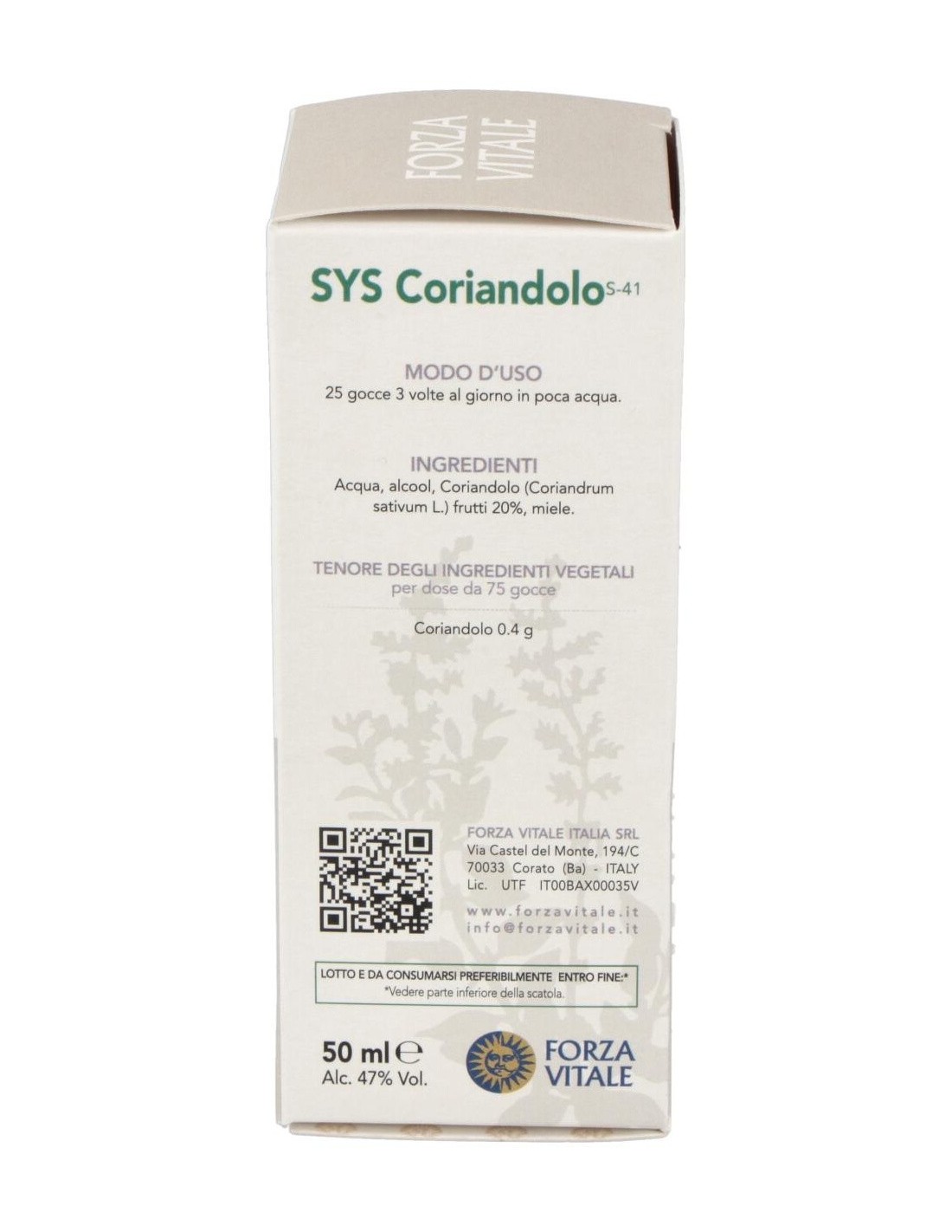 Sys.Coriandolo (Cilantro) 50Ml. de Forza Vitale