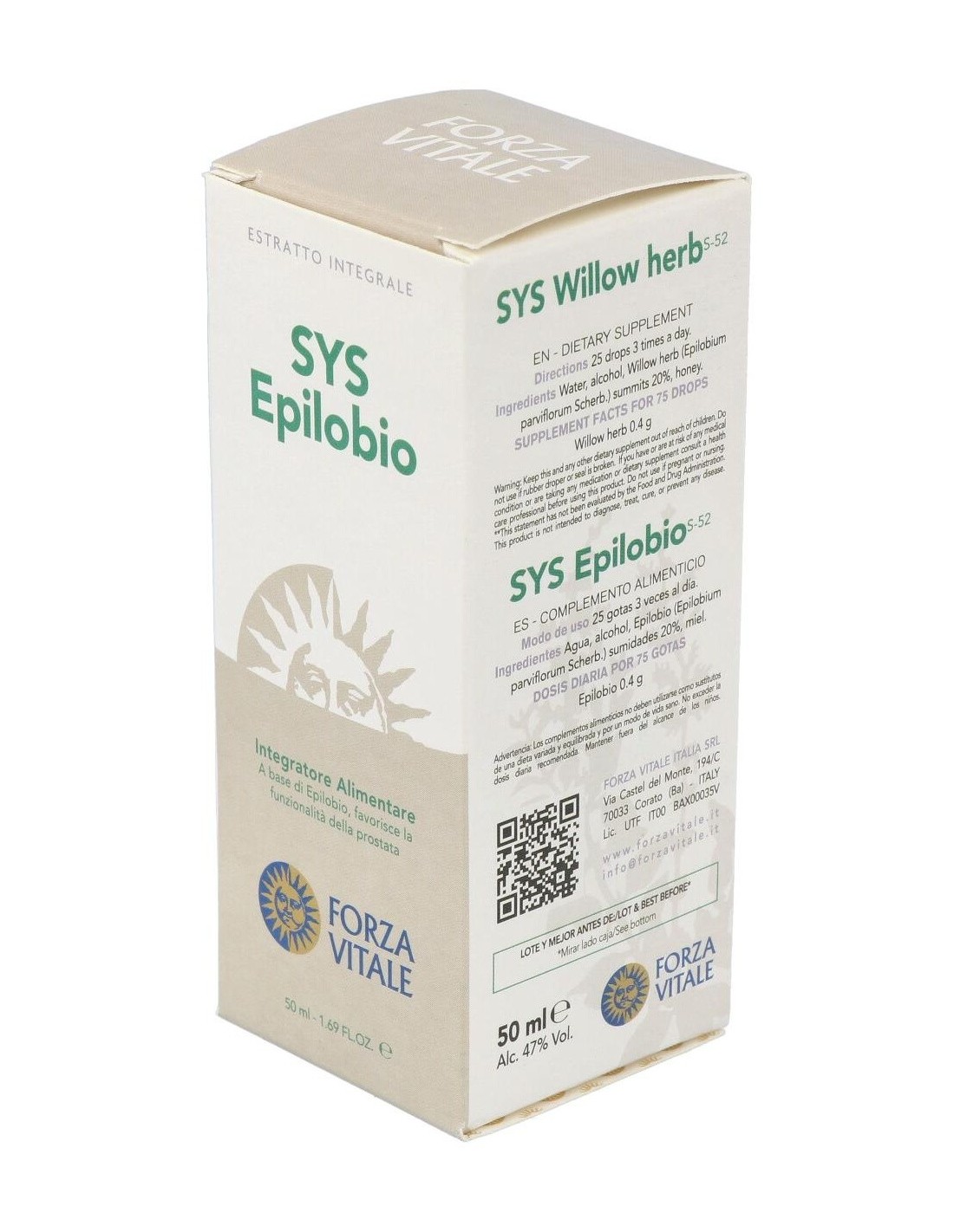 En Europa central, crecen diversas variedades de esta planta. Un tiempo, el epilobio pequeño era menospreciado porque volvía a crecer en el jardín entre las plantas de verdura. Los flavonoides que contiene, en particular derivados del aceite de alcanfor, quercetina y miricetina, ß-sitoesterol, diversos esteros del sitosterol, sitosterol-glicósidos y derivados del ácido gálico, tienen un efecto positivo sobre la próstata. Ingredientes:Agua, Alcohol, Epilobio (Epilobium parvi orum) sumidades 20%, miel. Ingredientes activos por dosis diaria (2 ml):0,4 gramos de epilobio. Modo de empleo:Adultos: Tomar 25 gotas 3 veces al día en poca agua o vía sublingual.Niños hasta 12 años: Tomar 10 gotas 3 veces al día en poca agua o en zumo de fruta. Presentación:Frasco de 50 ml.