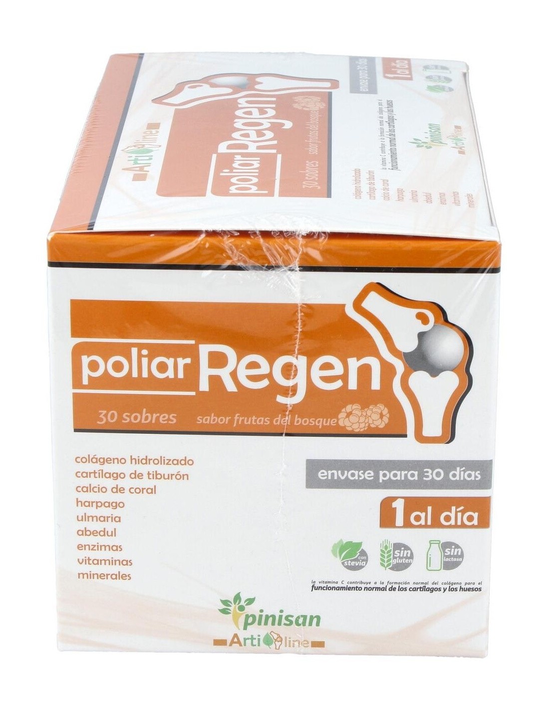 Las funciones más importantes de las articulaciones son de constituir puntos de unión entre los componentes del esqueleto (huesos, cartílagos y dientes) y facilitar movimientos mecánicos (en el caso de las articulaciones móviles), proporcionándole elasticidad y plasticidad al cuerpo. El dolor articular está entre los tipos más frecuentes de dolor. Las principales causas de dolor son traumatismo y artritis aguda y crónica. Generalmente, el dolor articular se asocia con perturbación de la función de la articulación, desde restricción en los movimientos hasta incapacidad. Las causas más frecuentes del dolor articular son la artritis, artrosis o el reuma, aunque también se produce por otros motivos y puede verse incrementado por factores externos al organismo. En muchos casos, no resulta posible eliminar por completo estos dolores y no hay una curación posible, pero lo que sí se puede hacer es llevar a cabo determinadas acciones que ayuden a reducir el dolor. Poliar Regen aporta una cuidada composición con ingredientes naturales que ayudaran al mantenimiento y regeneración de las articulaciones, aportando además una serie de antiinflamatorios naturales, libres de indeseables efectos secundarios, que ayudarán a superar las fases de dolor agudas en las enfermedades degenerativas de las articulaciones. Ingredientes por sobre: