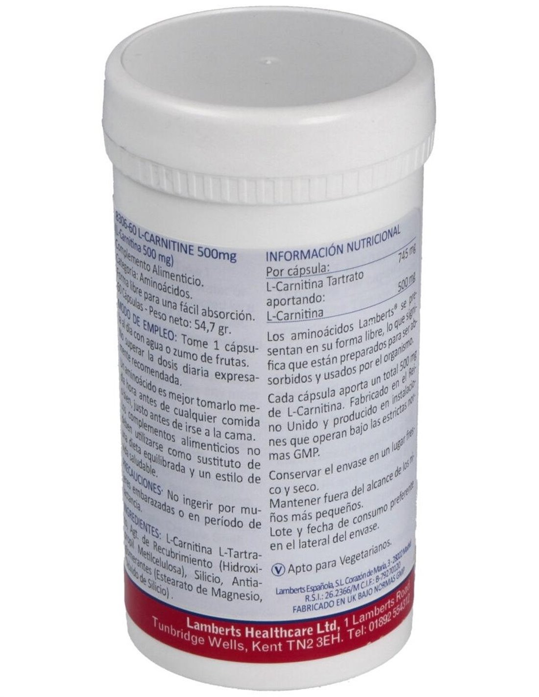 L-Carnitina 500 mg 60 Caps. de Lamberts