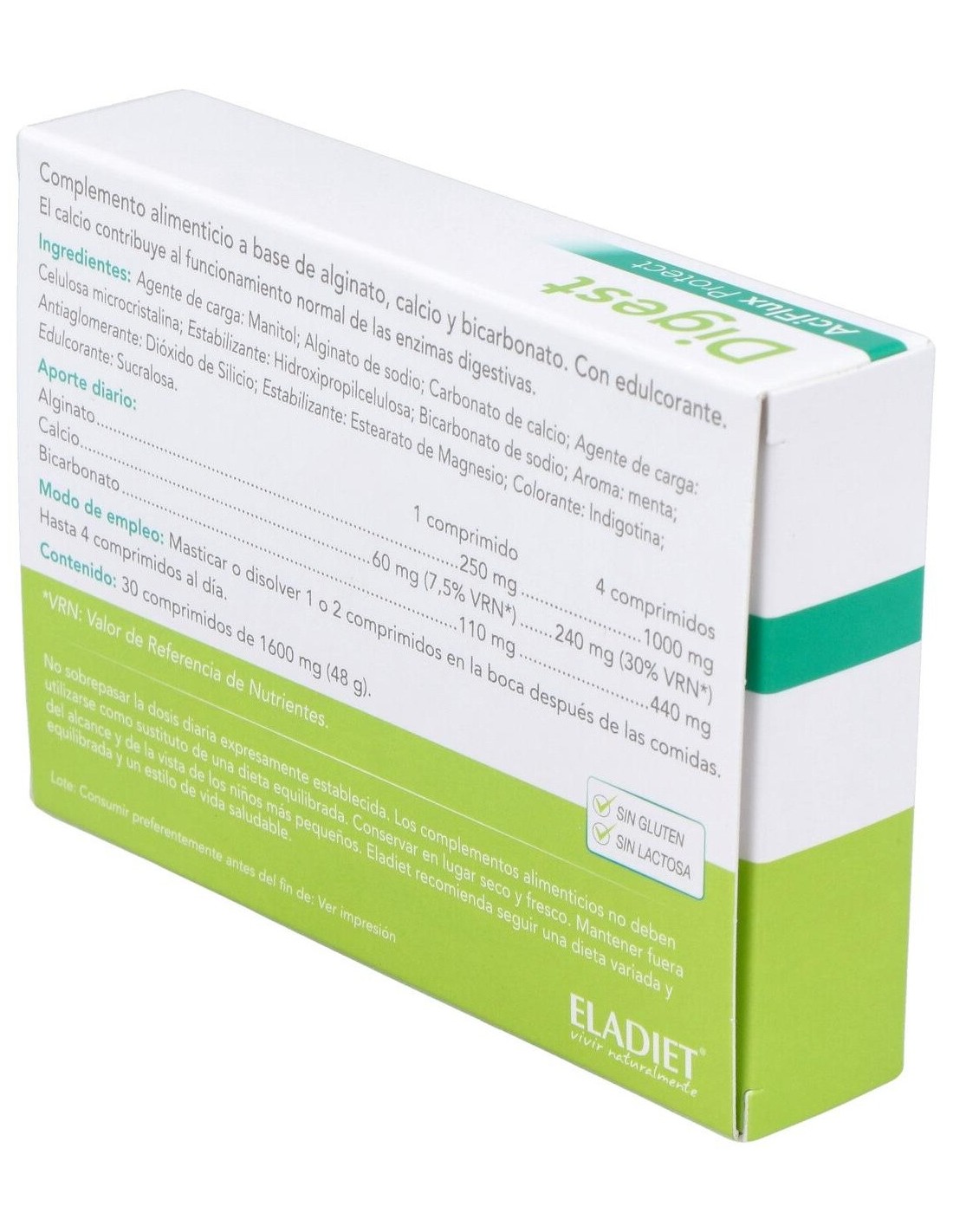 Doble efecto: trata la acidez y el reflujo (comprimido bicapa que neutraliza el pH del estómago y forma una barrera protectora). Sabor a menta. Apto para embarazadas.