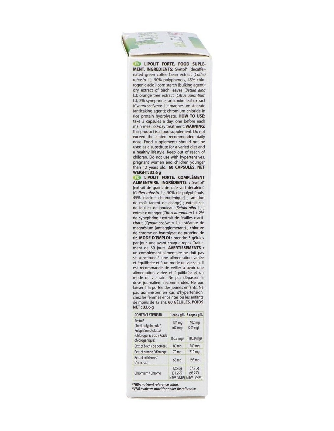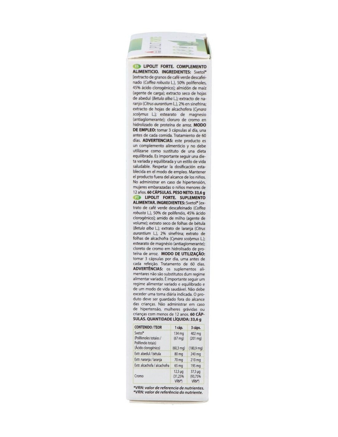 Svetol® (extracto de granos de café verde descafeinado Coffea robusta L.: 50% polifenoles, 45% ácidos clorogénicos).............134 mg