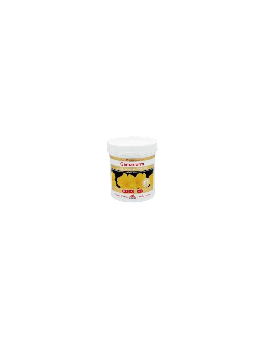 Aceite vegetal virgen de onagra con contenido garantizado en GLA (ácido a-linolénico), que beneficia el consumo de ácidos grasos esenciales, y actúa favorablemente ante el tejido inflamado.