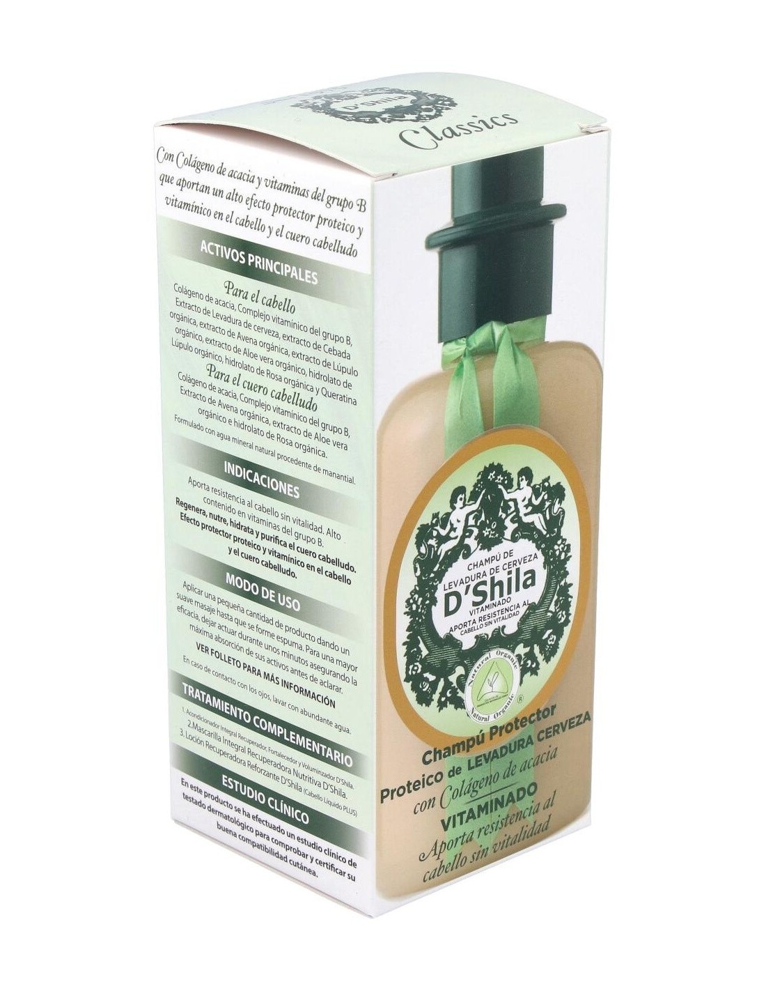 Extracto de Levadura de cerveza, Extracto de Avena orgánica, Extracto de Cebada orgánica, Extracto y destilado de Lúpulo orgánico, Extracto de Aloe vera orgánico, Destilado de Rosa orgánica, Vitaminas del grupo B, Queratina y proteínas capilares.