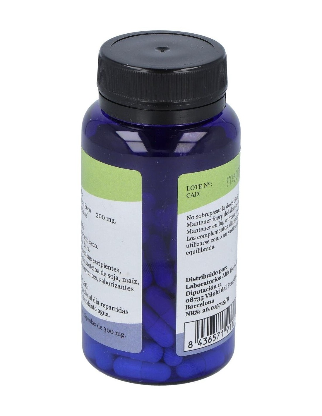 Tomar de 4 a 6 cápsulas al día repartidas con las comidas y abundante agua.