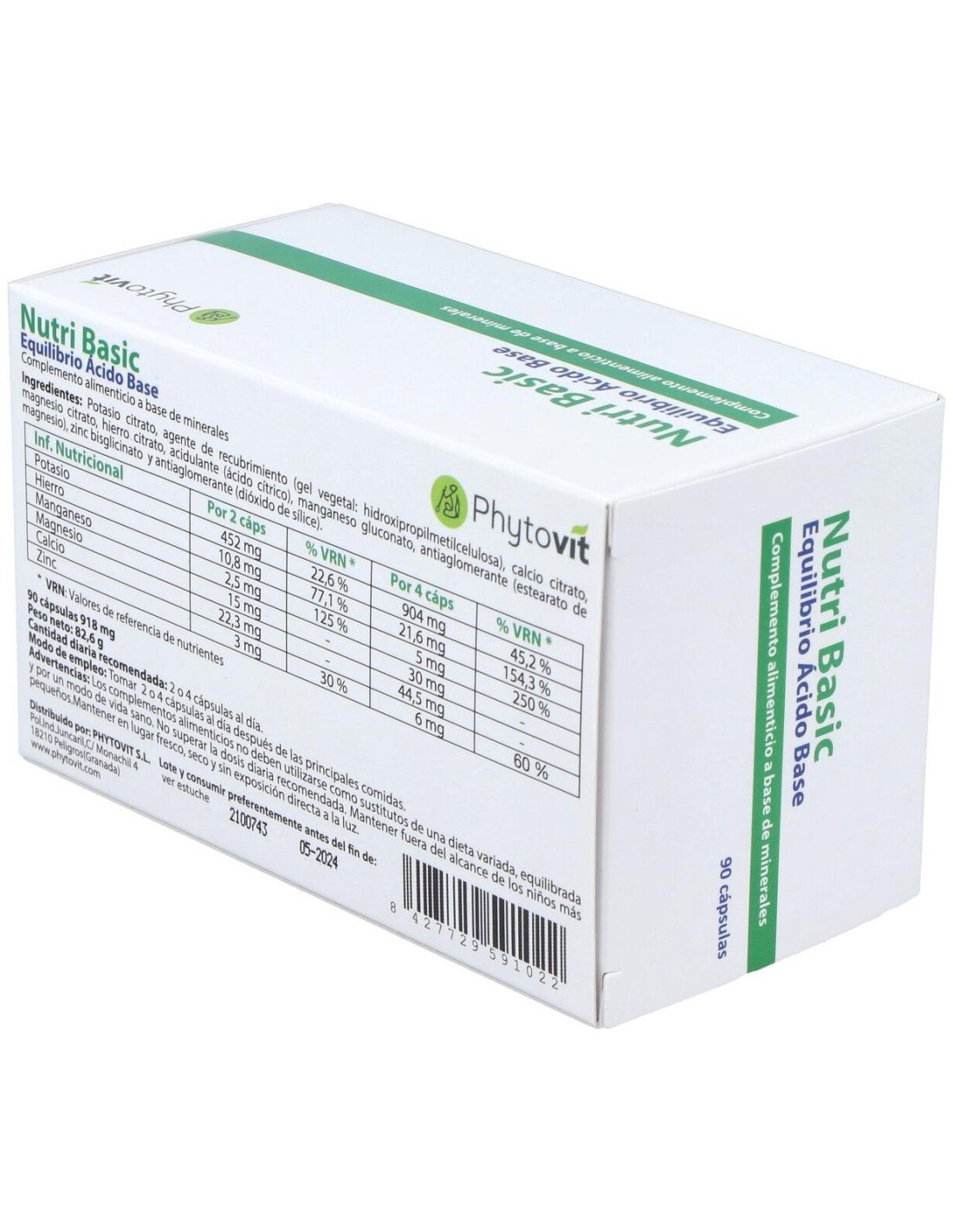 Ingredientes:Potasio citrato, agente de recubrimiento (gel vegetal: hidroxipropilmetilcelulosa), calcio citrato, magnesio citrato, hierro citrato, acidulante (ácido cítrico), manganeso gluconato, antiaglomerante (estearato de magnesio), zinc bisglicinato y antiaglomerante (dióxido de sílice).Modo de empleo:Tomar 2 o 4 cápsulas al día después de las principales comidas.Presentación:Envase de 90 capsulas vegetales.
