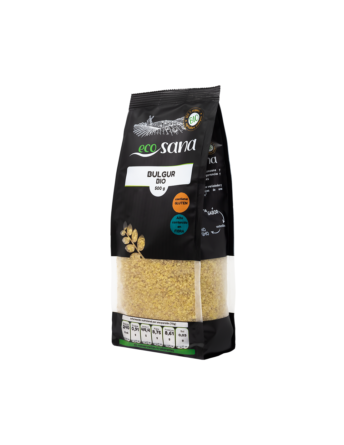 Modo de empleo:La preparación del bulgur es muy sencilla: echamos agua con sal en una cazuela (el doble de volumen de agua por cada parte de bulgur). Una vez esté hirviendo el agua, añadimos el bulgur, removemos, bajamos el fuego al mínimo y tapamos. A los 15 minutos, destapamos y dejamos reposar unos minutos.Presentación:Envase de 500 gramos.Recomendaciones y advertencias:Producto vegano. Puede contener trazas de gluten, sésamo, frutos de cáscara y soja.