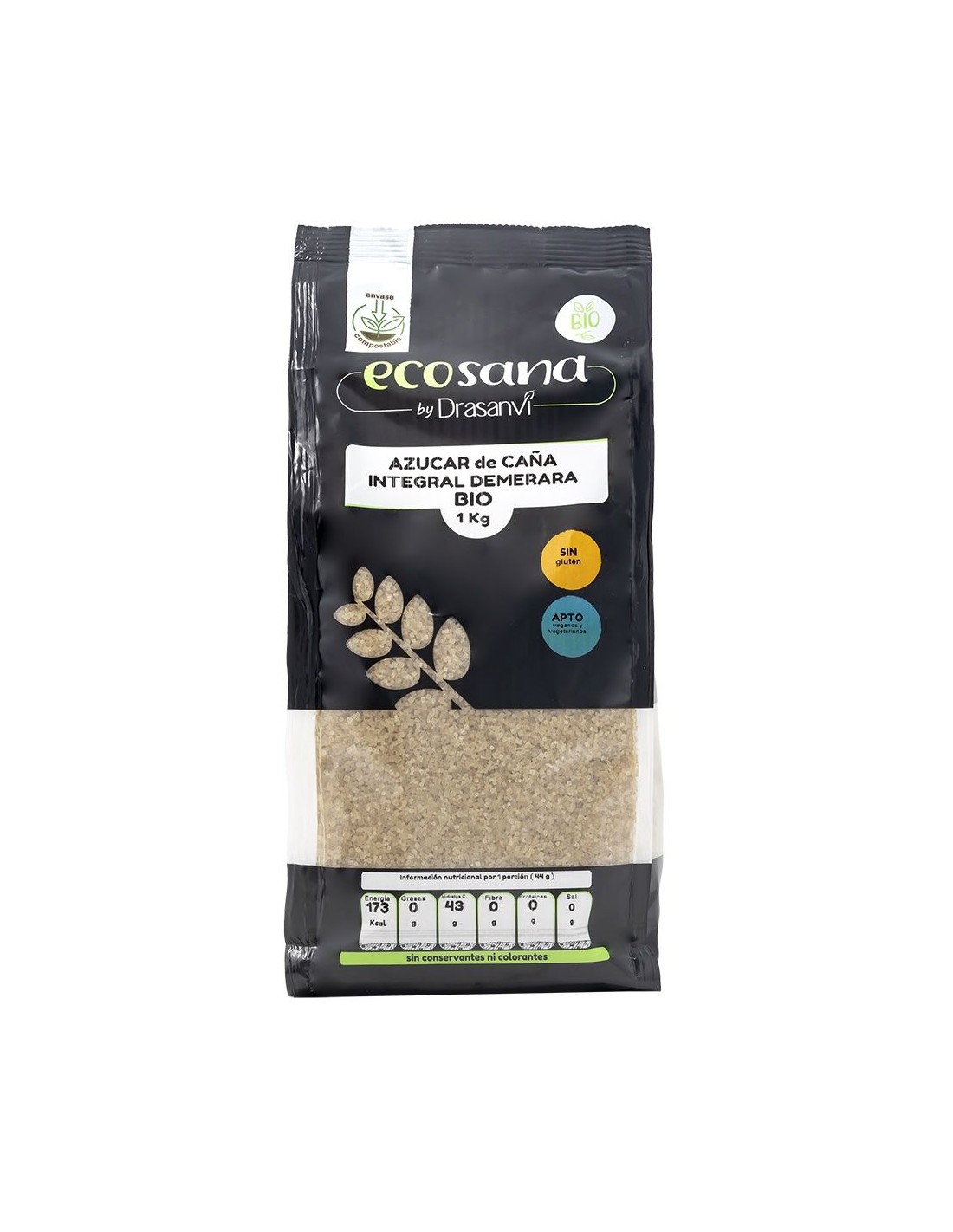 Ingredientes:Azúcar de caña integral*. (*) Procedente de agricultura ecológica.Valor nutricional por 100 gramos: