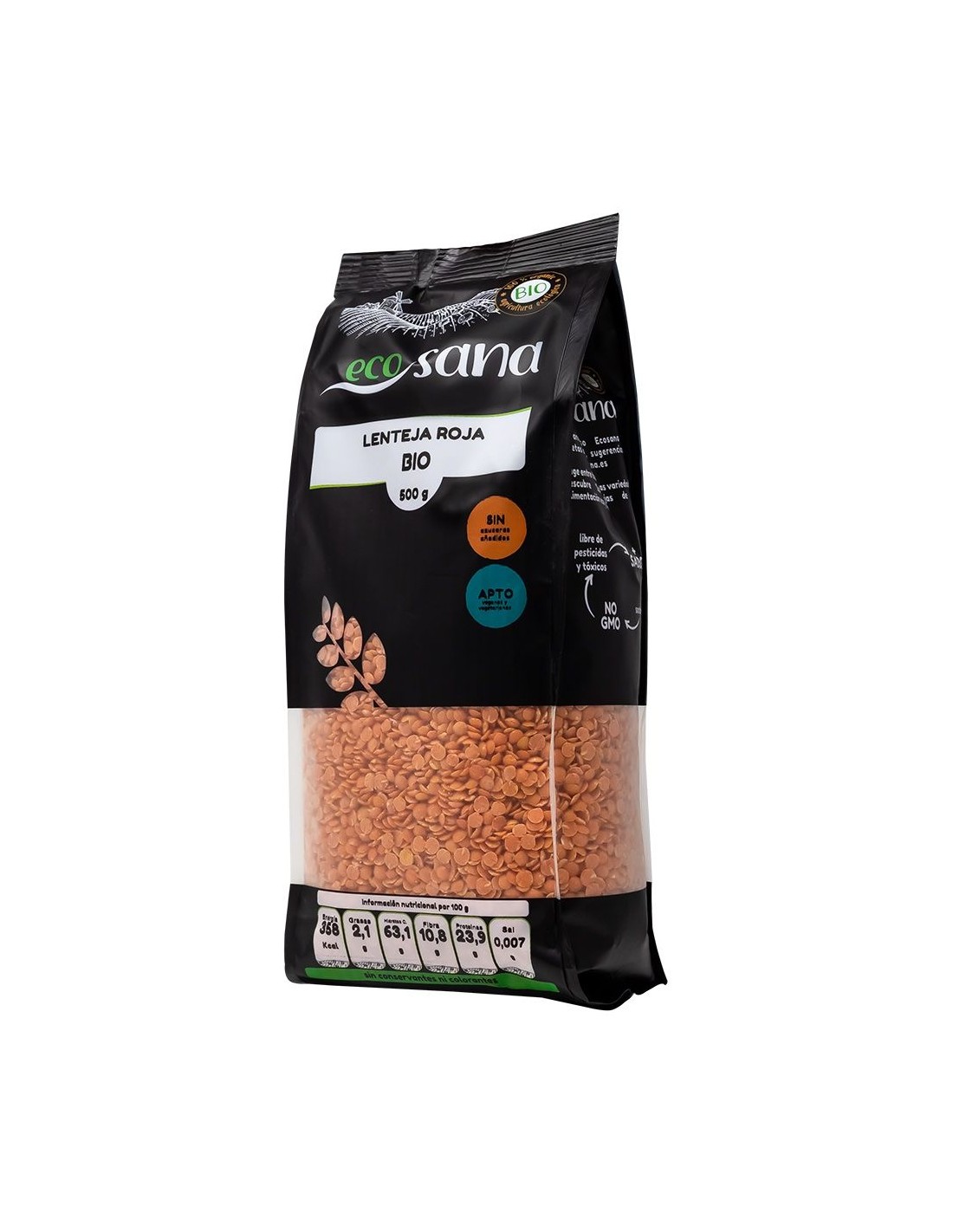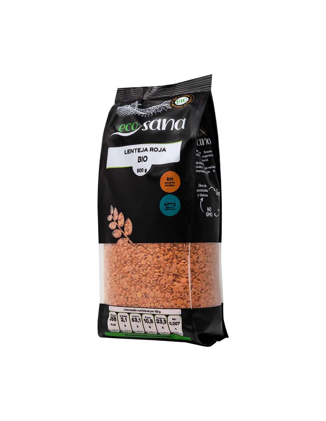 Ingredientes:Lenteja roja coral*. (*) Procedente de agricultura ecológica.Valor nutricional por 100 gramos: