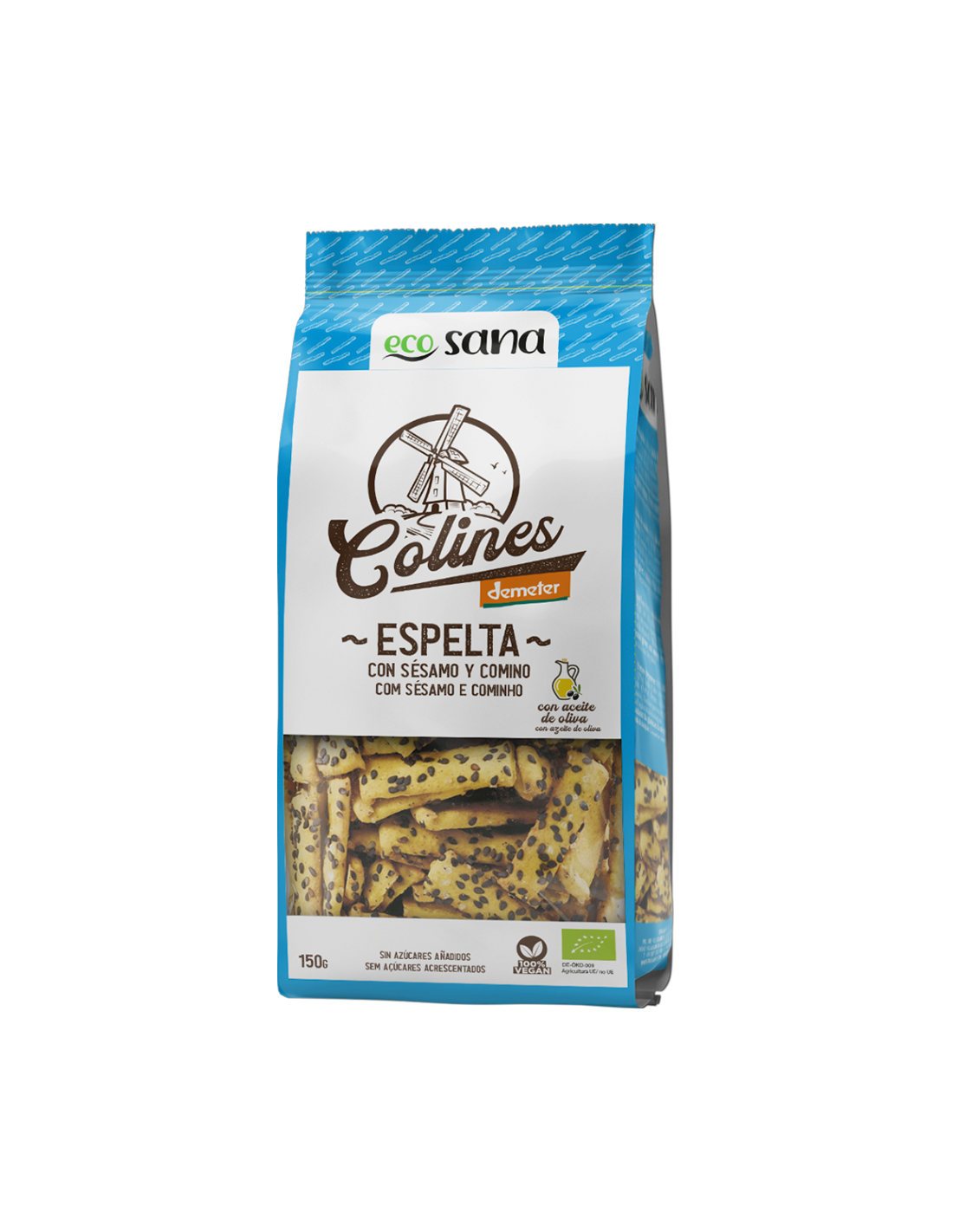Los picos o colines de pan con sésamo y comino de Ecosana son obtenidos con ingredientes procedentes de agricultura ecológica. Además para su elaborac
