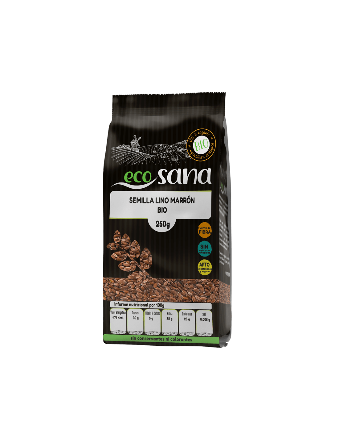 Ingredientes:Semillas de lino marrón*. (*) Procedente de agricultura ecológica.Valor nutricional por 100 gramos: