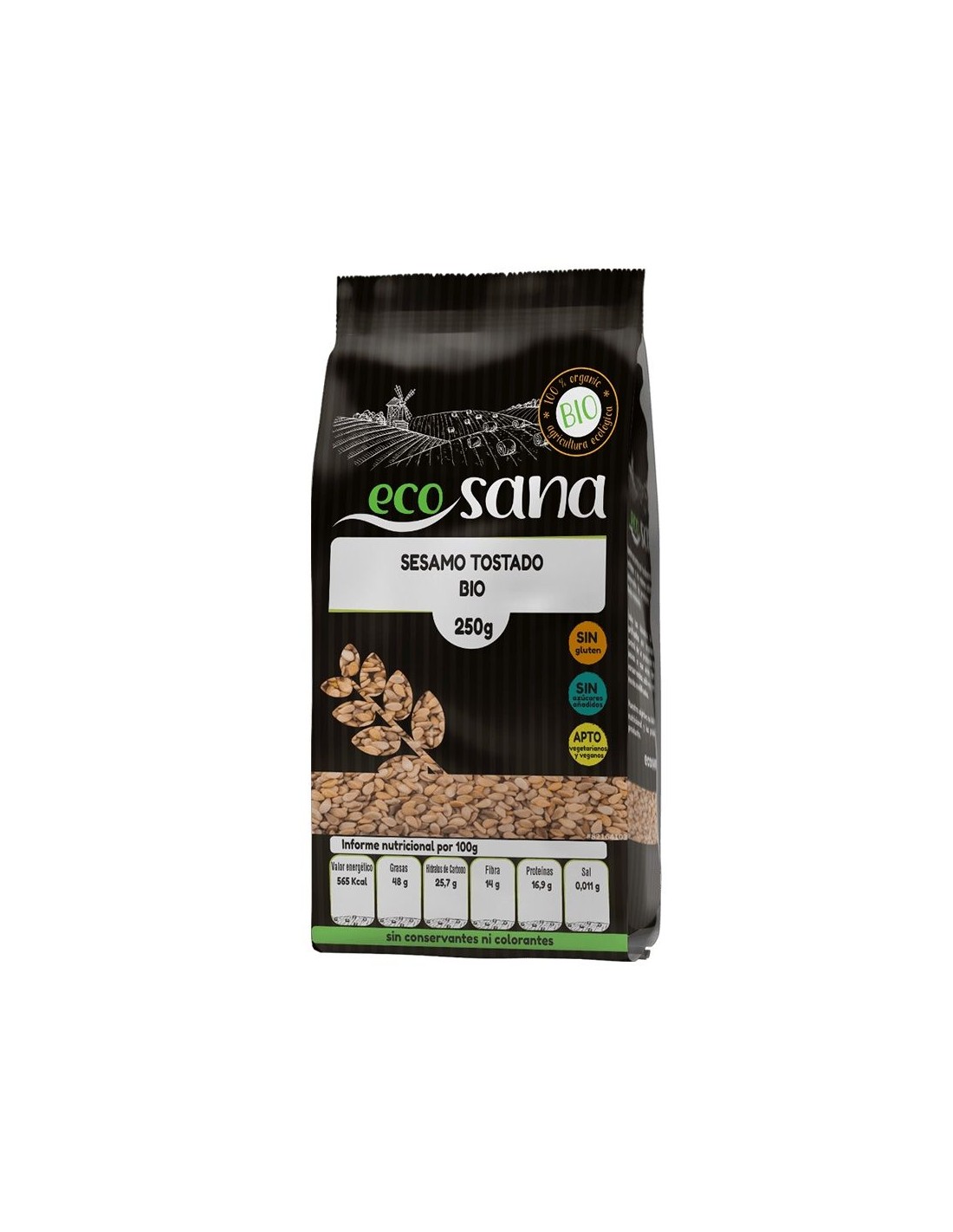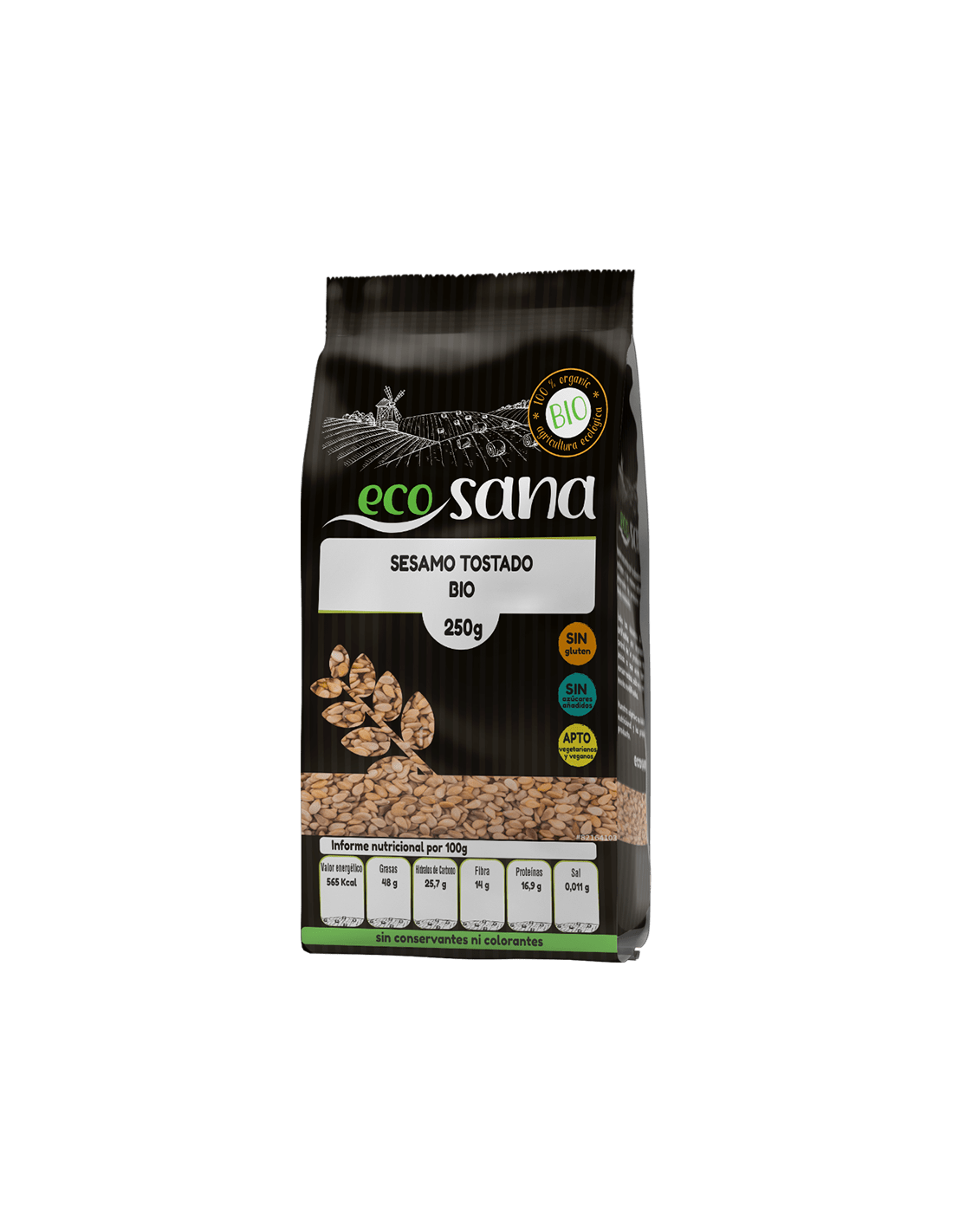 Ingredientes:Semillas de sésamo natural tostado*. (*) Procedente de agricultura ecológica.Valor nutricional por 100 gramos: