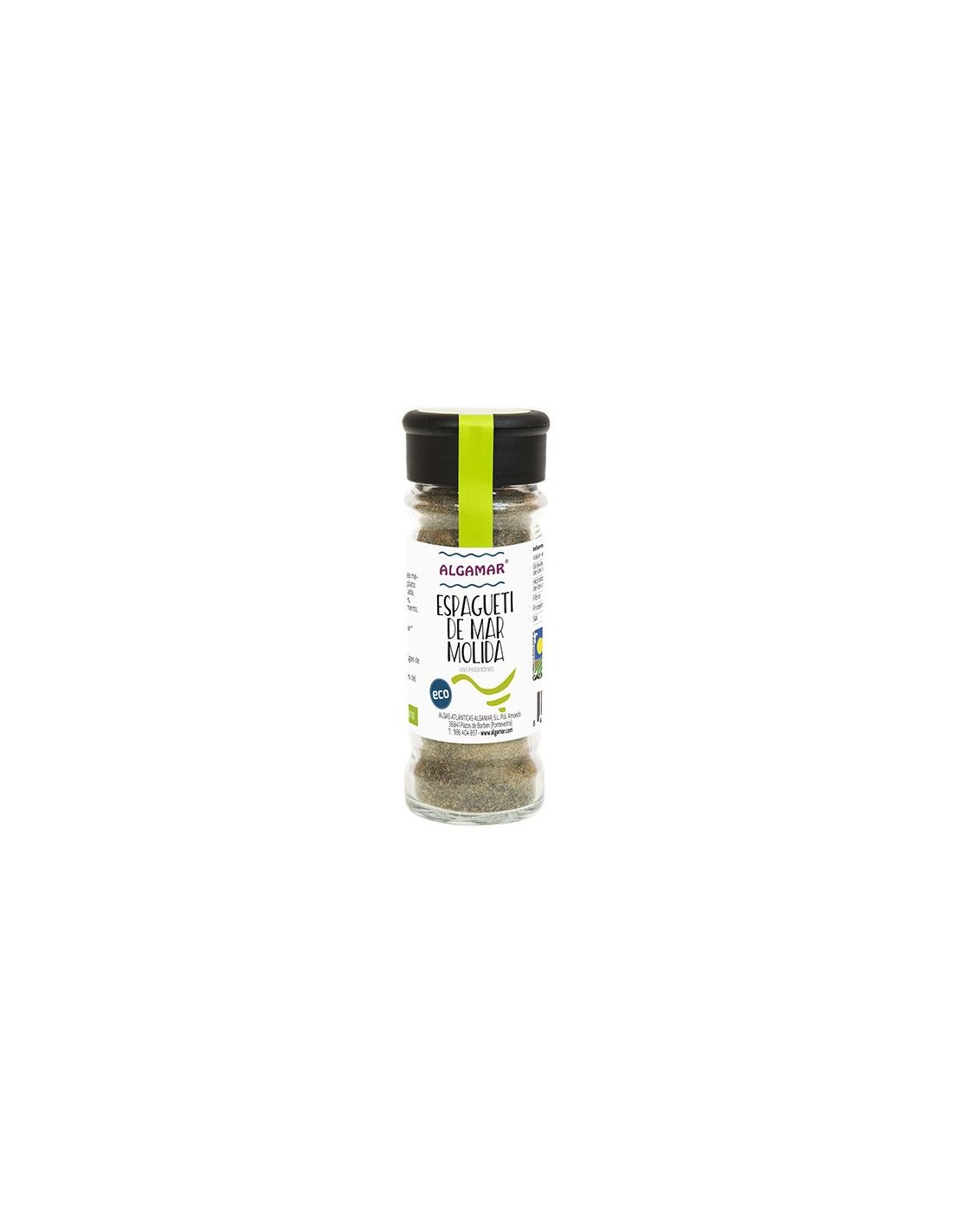 Alga Espagueti molida, en tarro de vidrio especiero de Algamar