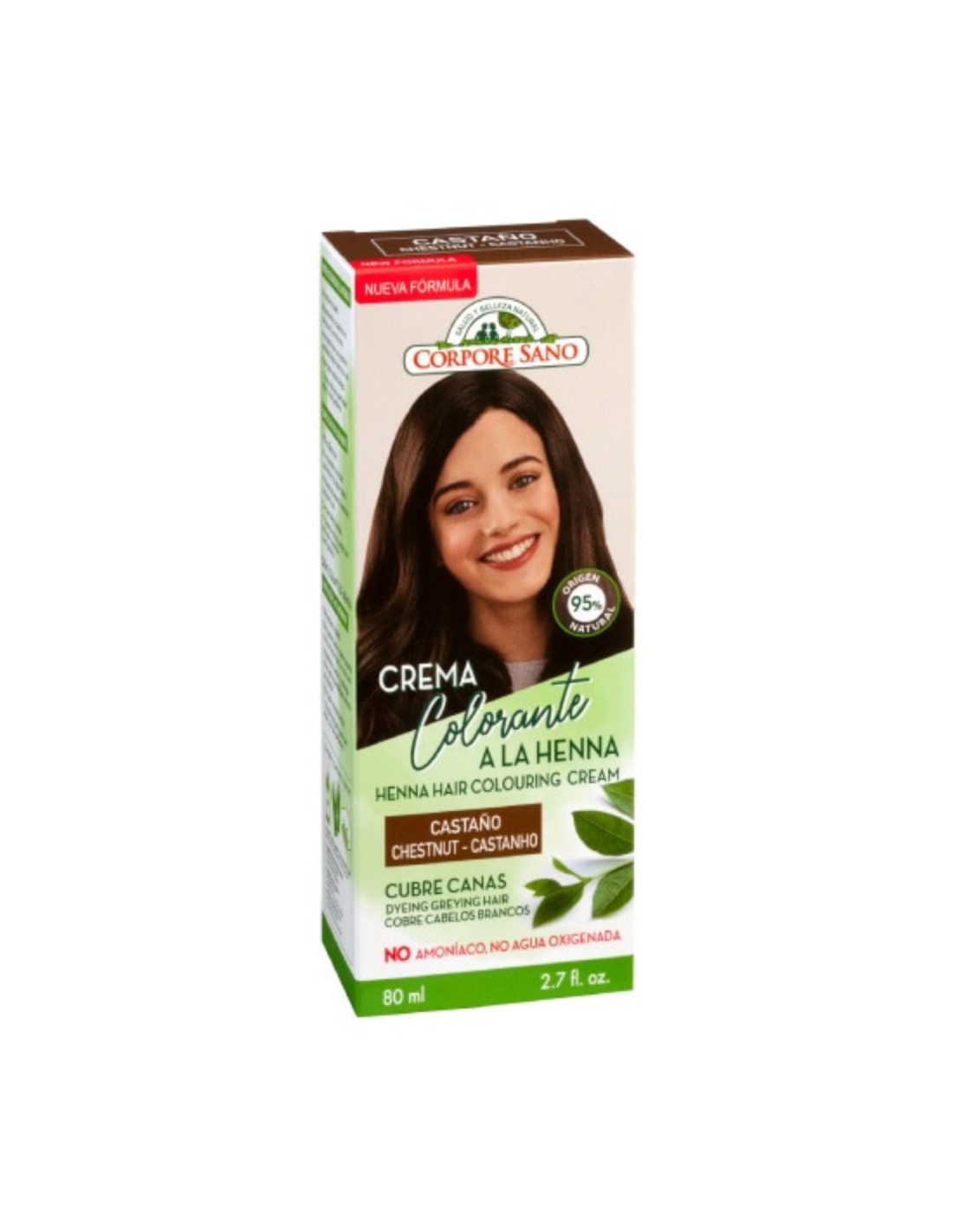 La crema colorante de Henna es un producto de coloración preparado para su uso, sin necesidad de mezclas. Concebido para aportar reflejos Castaños al cabello, camuflar la raíz y cubre las canas, proporcionando brillo, color y suavidad intensos sin dañar el cabello.Su fórmula contiene Henna para reforzar el color, Aloe Vera para hidratar y proteger el cabello, Jojoba para suavizar y aportar brillo y aminoácidos de Trigo y Soja para reestructurar intensamente el cabello. También contiene filtro UV para proteger el color de las radiaciones solares. Es compatible con cabellos teñidos con tintes permanentes.No contiene amoníaco, parabenos ni agua oxigenada por lo que no aclara el tono del cabello ni decolora. Su aplicación es fácil, cómoda y está lista en 20 minutos. Reaviva el color natural del cabello y proporciona intensos reflejos que desaparecen progresivamente tras varios lavados.Es un producto adecuado para aquellas personas en busca de una coloración capilar libre de parabenos, amoníaco ni agua oxigenada. Beneficios: