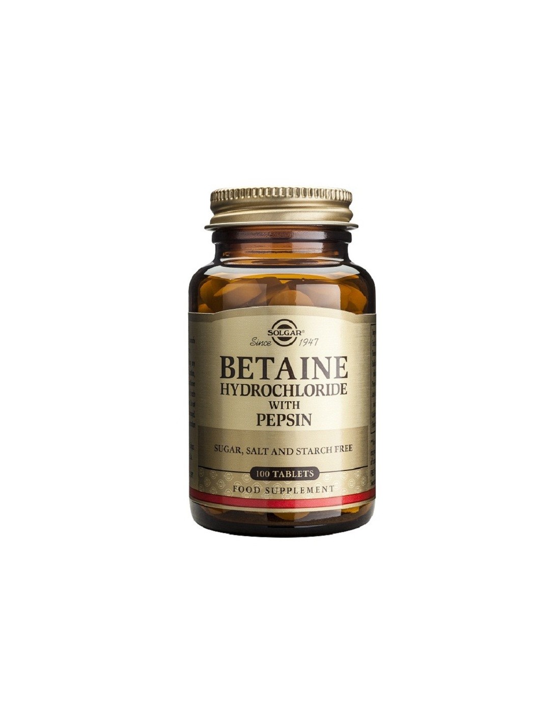 Descubre el poder increíble de Betaina Clorhidrato Con Pepsina 100Comp. de Solgar, un suplemento diseñado para mejorar tu digestión de manera instantánea y efectiva. Este producto exclusivo combina dos ingredientes clave que trabajan en sinergia para apoyar la salud digestiva y optimizar la absorción de nutrientes esenciales.