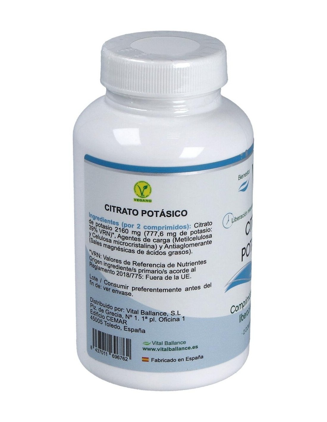 Citrato de potasio, Agentes de carga (Metilcelulosa y Celulosa microcristalina) y Antiaglomerante (Sales magnésicas de ácidos grasos).