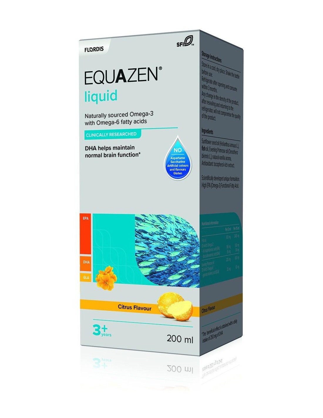 Equazen es una línea de complementos alimenticios de origen natural a base de Omega-3 (aceite de pescado) y Omega-6 (aceite virgen de Onagra), que aporta las proporciones adecuadas de EPA, DHA y GLA, gracias a su fórmula exclusiva y avalada científicamente para favorecer el desarrollo intelectual, mantener el funcionamiento óptimo del cerebro y prevenir el declive cognitivo.