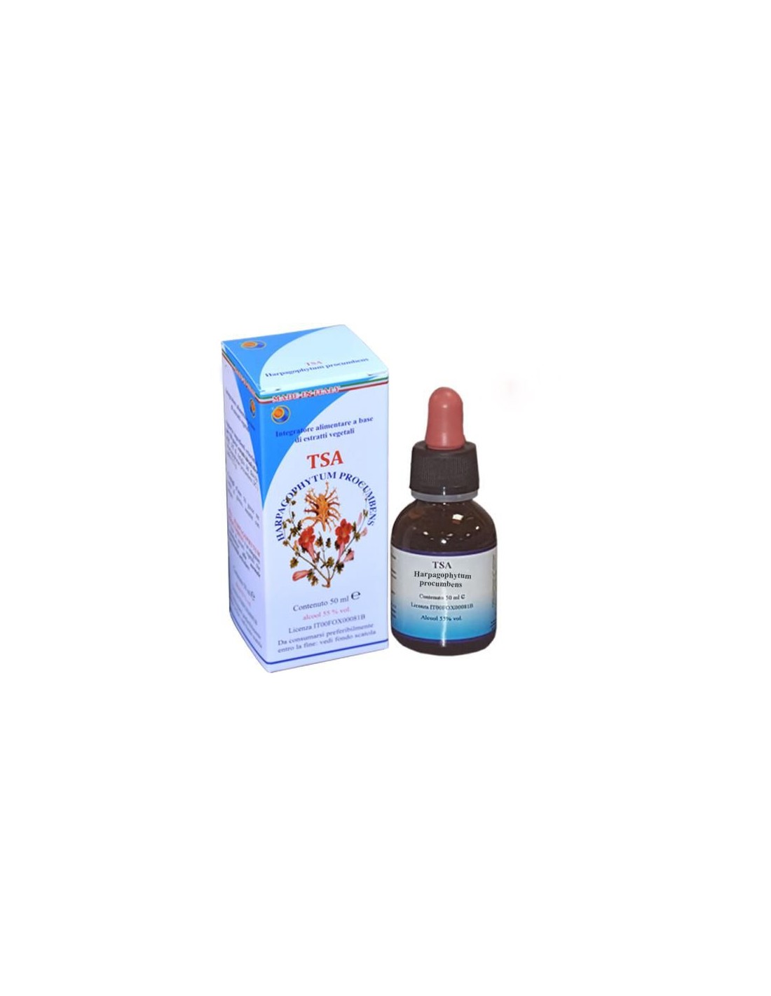 TSA Harpagophytum Procumbens se obtiene remojando las raíces de las plantas, recién recogidas en su tiempo balsámico (otoño), en una solución hidroalcohólica, donde el alcohol es espagírico, y siguiendo el método espagírico-alquímico de Solanimus.La planta contiene glucósidos iridoides (el más conocido es el harpagoside), azúcares, fitosteroles, flavonoides, arpagochinone y otras sustancias. Las propiedades analgésicas y anti-inflamatorias de la planta son dadas por el harpagoside, que es un anti-inflamatorio vegetal de acción similar a las anti-inflamatorios de síntesis. Estudios sobre esta planta se han hecho también por Paul Belaiche en 1981 y confirmaron los beneficios aportados por el Harpagophytum procumbens en el tratamiento de la coxartrosis y en las artrosis cervicales y lumbares.Ingredientes por 120 gotas:Solución hidroalcohólica Espagírico-Alquímica con una relación de extracción de 1:5 (R.E. 1/5) de Harpagófito (Harpagophytum procumbens DC.) raíz 3,3 g.Modo de empleo:Tomar 25-40 gotas en un poco de agua, 3 veces al día.Presentación:Envase de 50 ml.