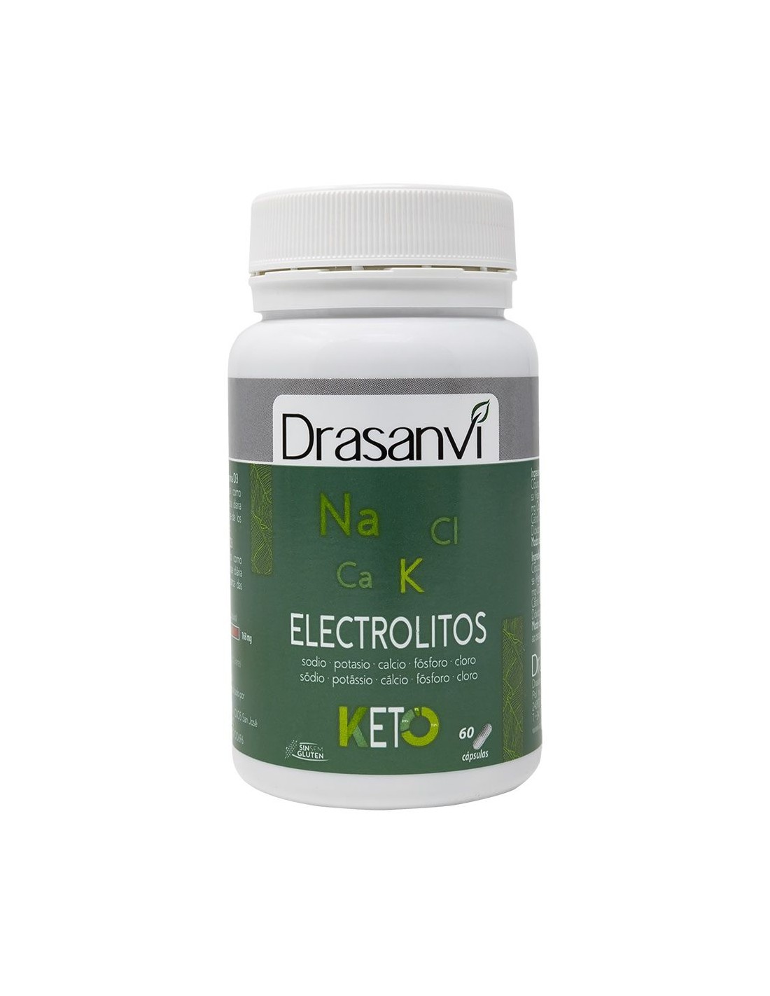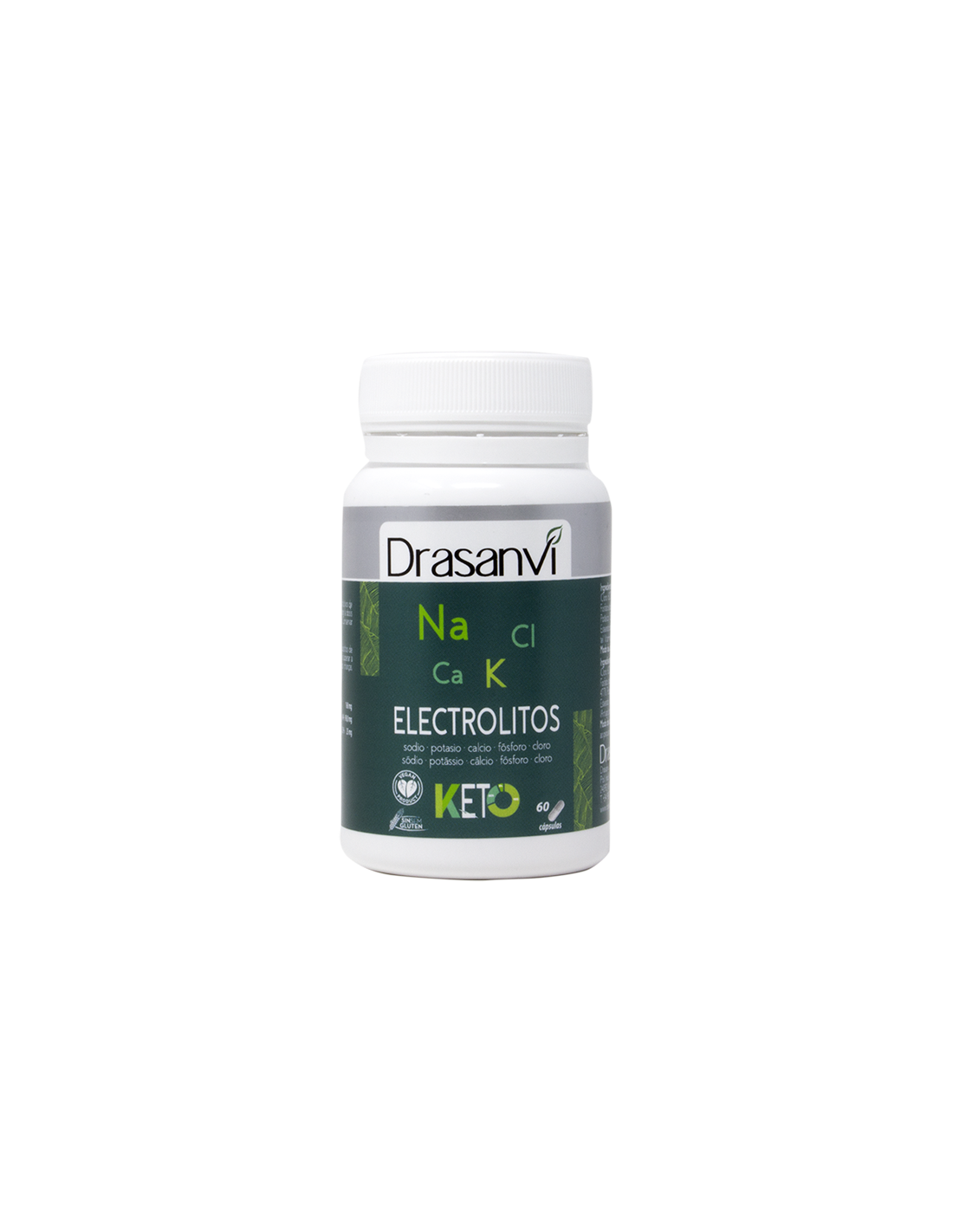 Los electrolitos son los minerales que se encuentran en el cuerpo y son fundamentales para diversas funciones del organismo.Los electrolitos más relevantes dentro de la dieta Keto son el sodio, el potasio, el magnesio, el cloruro y el calcio. Ingredientes:Celulosa microcristalina (Agente de carga), Cloruro sódico (Cloro 60,7%, Sodio 39,3%)(298 mg), Hidroxipropilmetilcelulosa (Agente de recubrimiento), Fosfato sódico(19% Fósforo, 42% sodio)(195 mg), Cloruro potásico (Cloro 47,7%, Potásico 52,3%) 190 mg, Carbonato de Calcio (Calcio 40%)(62,5 mg), Estearato de magnesio (Agente de carga), Dióxido de silicio (Antiaglomerante), Vitamina D3 (Colecalciferol)(4 mg).Modo de empleo:Tomar 2 cápsulas al día, preferiblemente en el desayuno.Presentación:Envase de 60 cápsulas.Recomendaciones y advertencias:No contiene gluten. Compatibles con dietas Keto.