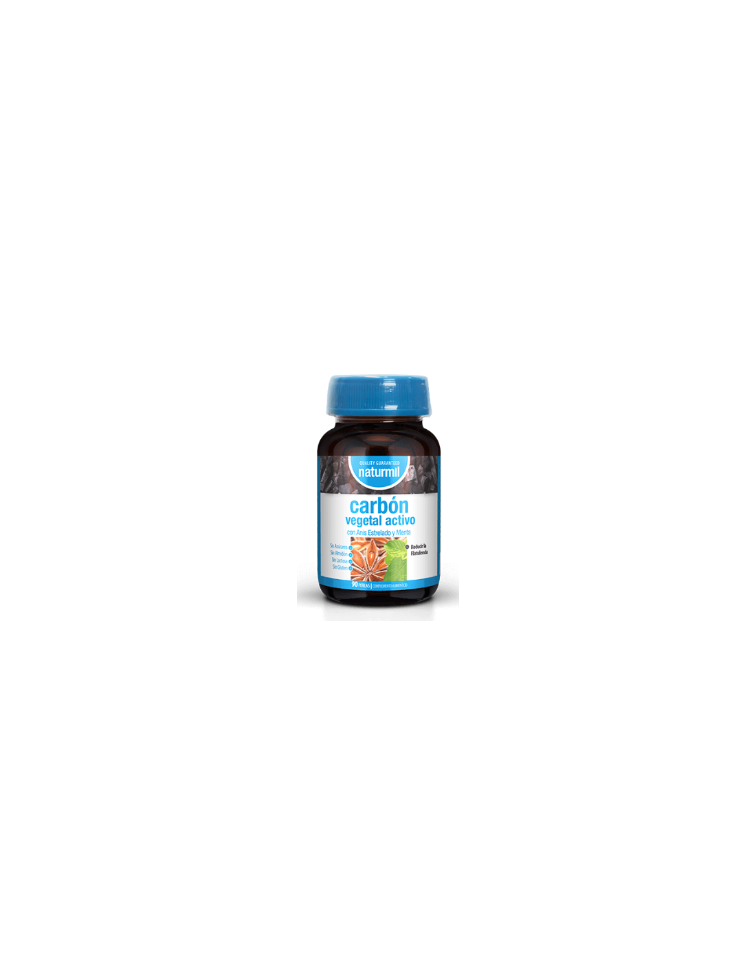 Ingredientes:Agente de carga: Aceite de girasol, gelatina, carbón vegetal activado, Illicium verum (Anís Estrellado, Aceite esencial), Mentha x piperita L. (Menta, Aceite essencial), glicerina USP, Aceite de soja parcialmente hidrogenado, lecitina de soja, silicio, cera de abejas, Aceite de soja hidrogenado.Modo de empleo:Tomar 2 perlas en el desayuno, 2 perlas en la comida y 2 perlas en la cena.Presentación:Envase de 90 perlas.Recomendaciones y advertencias:No contiene: Azúcar, almidón, lactosa ni gluten.