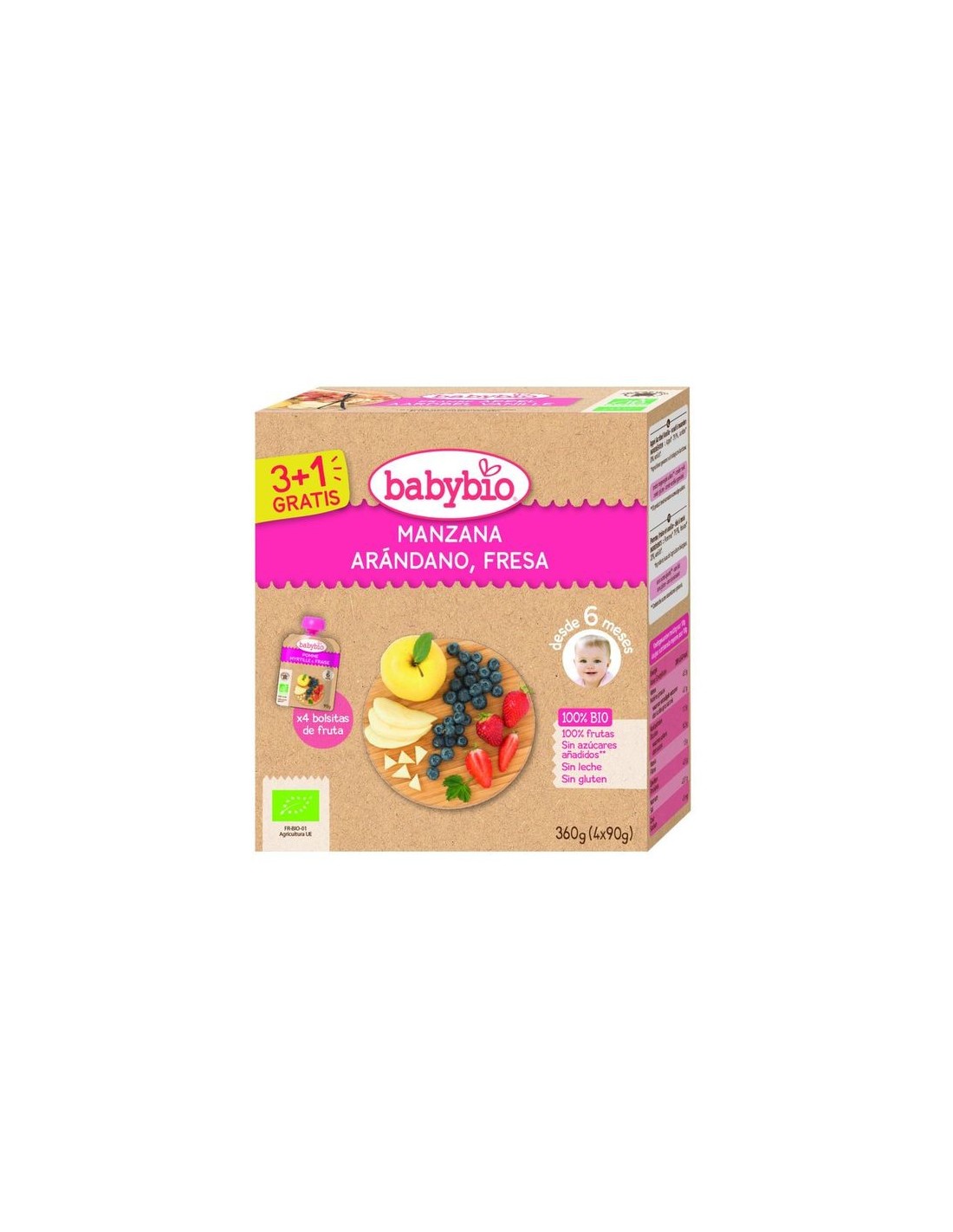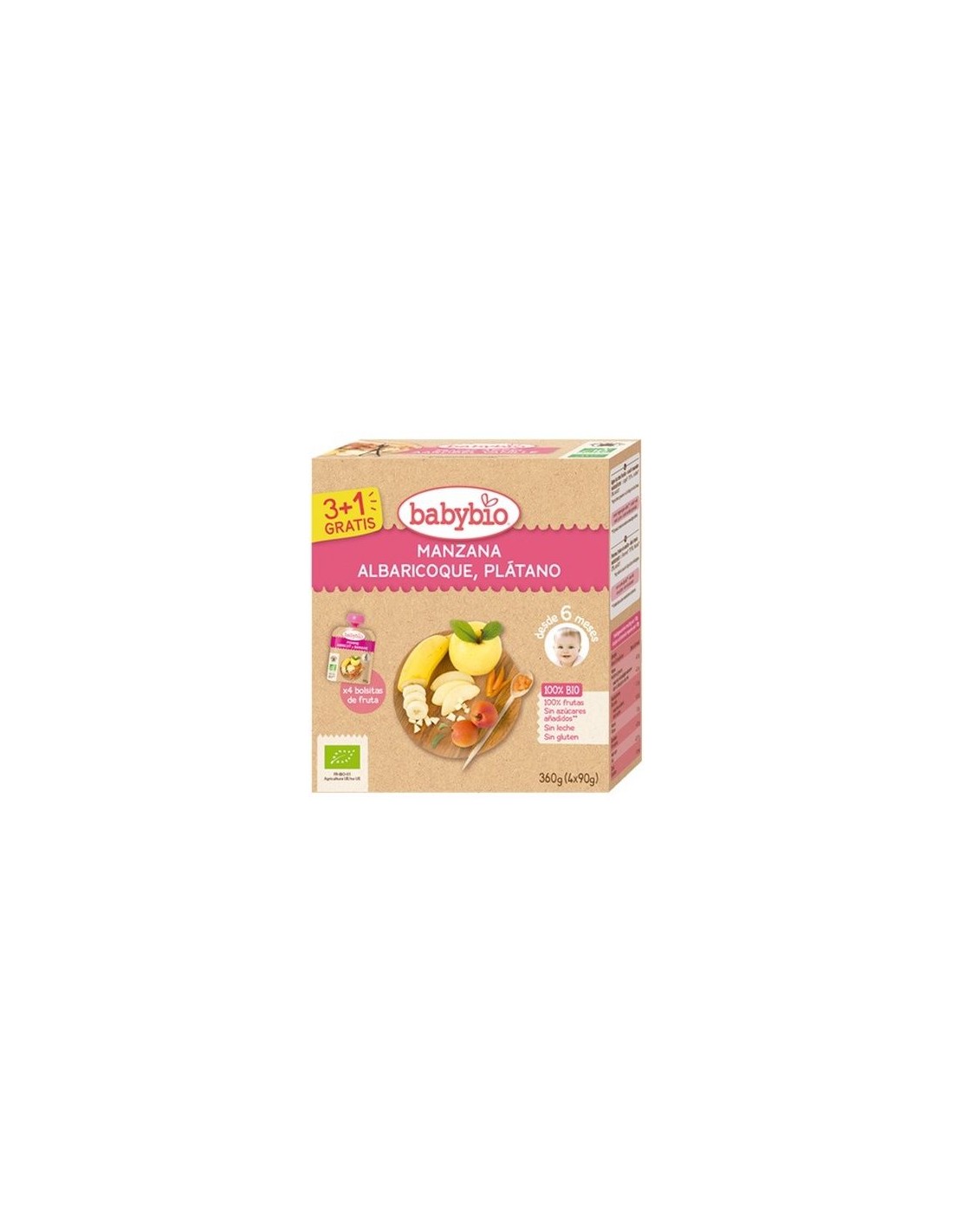 Bolsita de Fruta BIO - Manzana Albaricoque Plátano Bio 4 x 90 g de Baby Bio