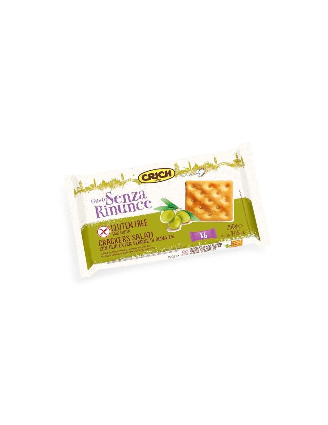 Crackers Salados Sin Gluten 200g Crich. Con aceite de oliva virgen extra, crujientes y deliciosas galletas saladas para disfrutar dónde y cuándo quieras. Gracias a su práctico envase para llevar se puede disfrutar de este cracker a cualquier hora del día.