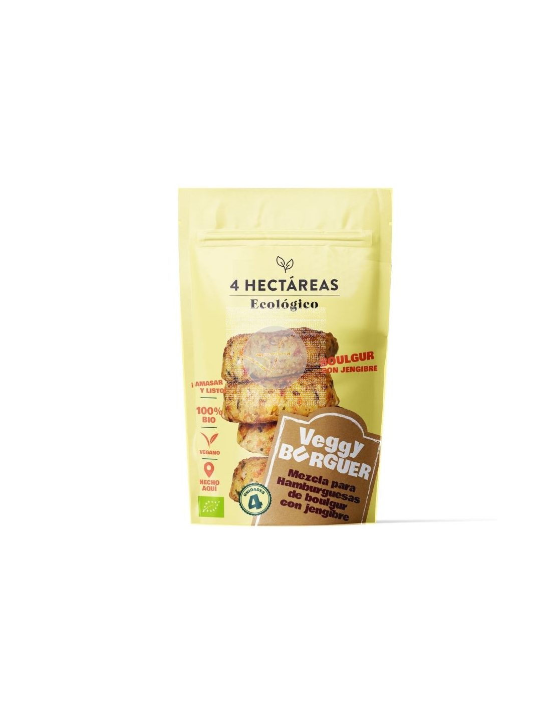 Veggy Burguer Bulgur con Jengibre Bio 160gr 4 Hectáreas, mezcla para hamburguesas vegetales a base de cereales, legumbres, semillas, jengibre y hortalizas.