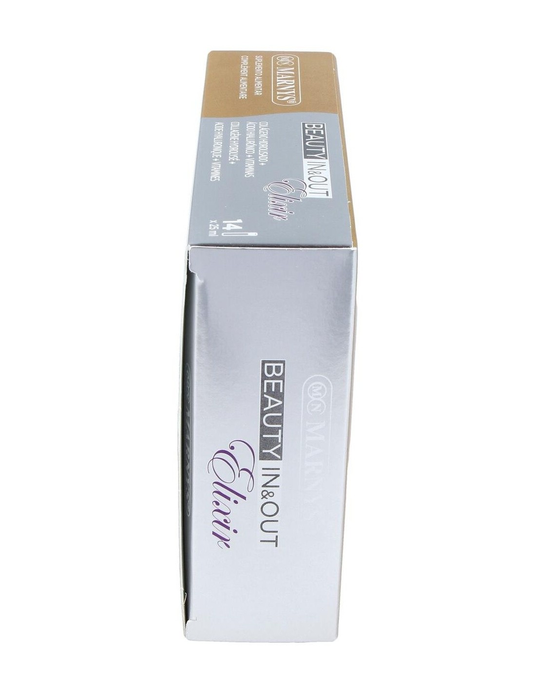 Beauty In & Out Elixir es un complemento alimenticio especialmente formulado para que la sinergia de sus componentes permita reestablecer la textura de la piel y mantener su aspecto joven. Actúa desde el interior para que sus efectos se reflejen en el exterior. Con colágeno hidrolizado tipo I, ácido hialurónico, semillas de uva (OPCs) y vitaminas.