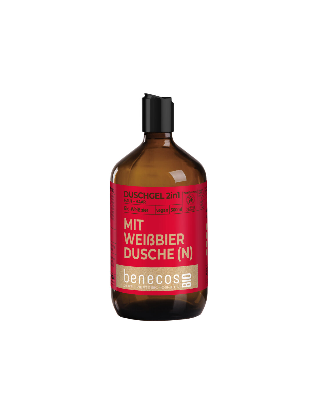 BENECOSGel de ducha refrescante 2 en 1 con cerveza de trigo ecológico, jugo de manzana ecológico regional y tensioactivos de origen vegetal. Cuida la piel y el cabello. Dermatológicamente Testado. Cosmética 100% ecológica certificada. Se puede rellenar con el sistema de recarga. Fórmula vegana.
