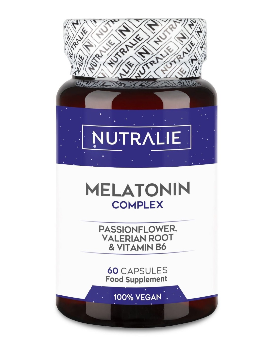 ), además de la vitamina B6.Nuestra Melatonina Complex pasiflora, es una combinación formulada con valeriana y vitamina B6, esta ultima además, contribuye a la función psicológica normal. Un correcto funcionamiento del proceso de formación de la melatonina mejora el sueño y ayuda a conciliarlo más rápidamente, además de sobrellevar mejor fenómenos como el jet lag.La Melatonina Complex de Nutralie, gracias a la vitamina B6 presente en su fórmula, contribuye al funcionamiento normal del sistema nervioso.Composición activa por cápsula: