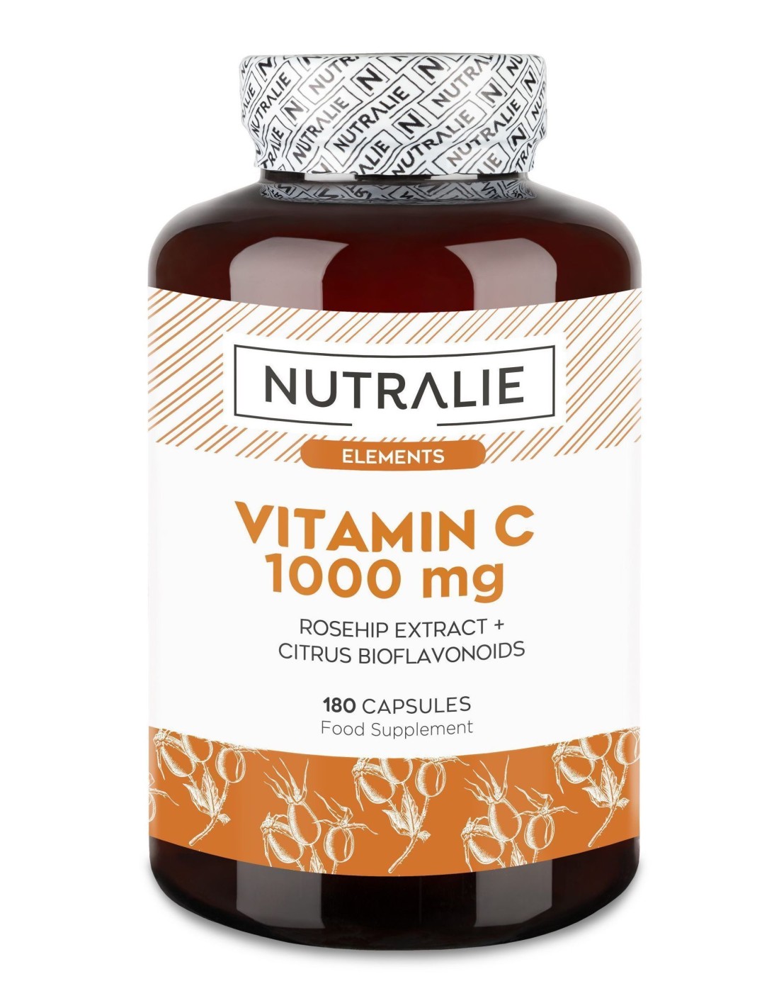 Ingredientes:Ácido L-ascórbico (Vitamina C), extracto seco escaramujo (Rosa canina L., fruto), cápsula (agente de recubrimiento: hidroxipropilmetilcelulosa), extracto seco Naranjo (Citrus sinensis (L.) Osbeck, fruto), antiaglomerantes (estearato de magnesio y dióxido de silicio), agente de carga (celulosa microcristalina).Modo de empleo:Tomar 2 cápsulas al día con un vaso de agua.Presentación:Envase de 180 cápsulas.