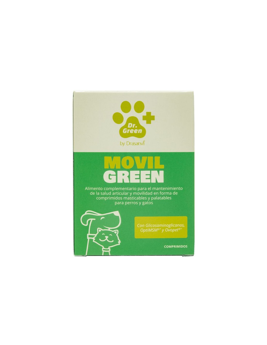 Alimento complementario para el mantenimiento de la salud articular y movilidad. Esta´ desarrollado en forma de comprimidos masticables y palatables para perros y gatos y en solucio´n oral para gatos y perros pequen~os.Contiene ingredientes para el mantenimiento de unas articulaciones sanas en perros y gatos. Esta´ compuesto por sustancias que son constituyentes naturales del carti´lago articular sano y que contribuyen a un correcto estado del mismo.Movilgreen contiene OptiMSM®, un MSM con un 99,8% de pureza y gran biodisponibilidad, y extracto seco estandarizado de Harpagofito, que disminuye la inflamacio´n y el dolor articular, membrana de huevo (Ovopet®), que dispone de varios estudios en animales que reflejan su efectividad en el mantenimiento del carti´lago articular.Su combinacio´n de ingredientes favorece el movimiento y facilita la actividad fi´sica en los animales con problemas articulares o previene el desarrollo de dichos problemas.Propiedades de los principios activos: