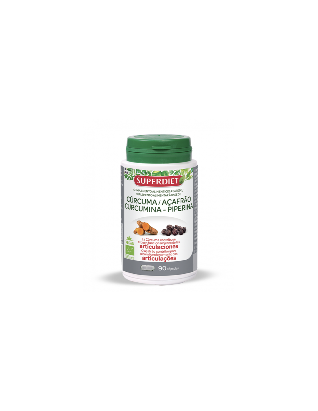 Cúrcuma Curcumina Piperina - 90 Cápsulas de Superdiet
