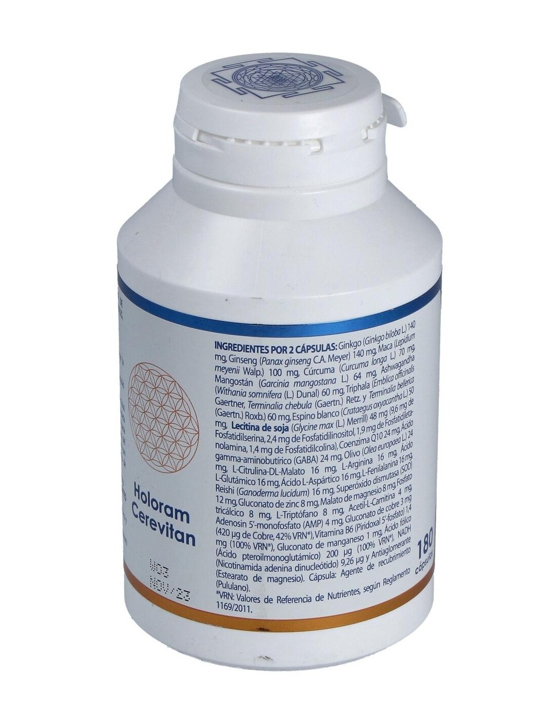 Holoram Cerevitan 180Cap. de Equisalud es un suplemento nutricional dirigido a personas que buscan apoyar la función cerebral, formulado con ingredientes seleccionados para contribuir al bienestar cognitivo diario.