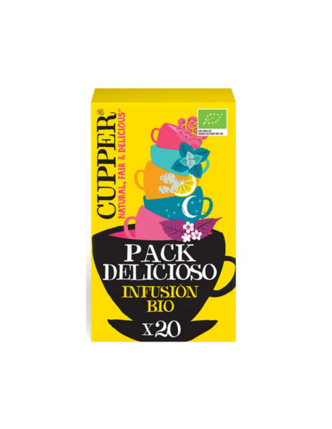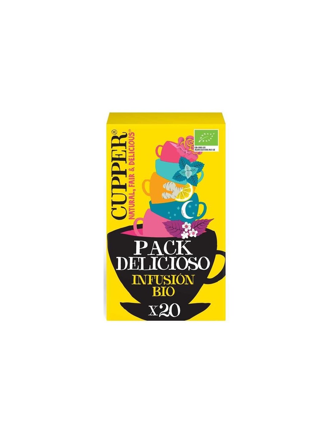 El Pack Variado Bio, 20 Sobres de Cupper es una selección de infusiones orgánicas para consumidores que buscan variedad y calidad natural, ofreciendo diferentes sabores gracias a ingredientes certificados de cultivo biológico.