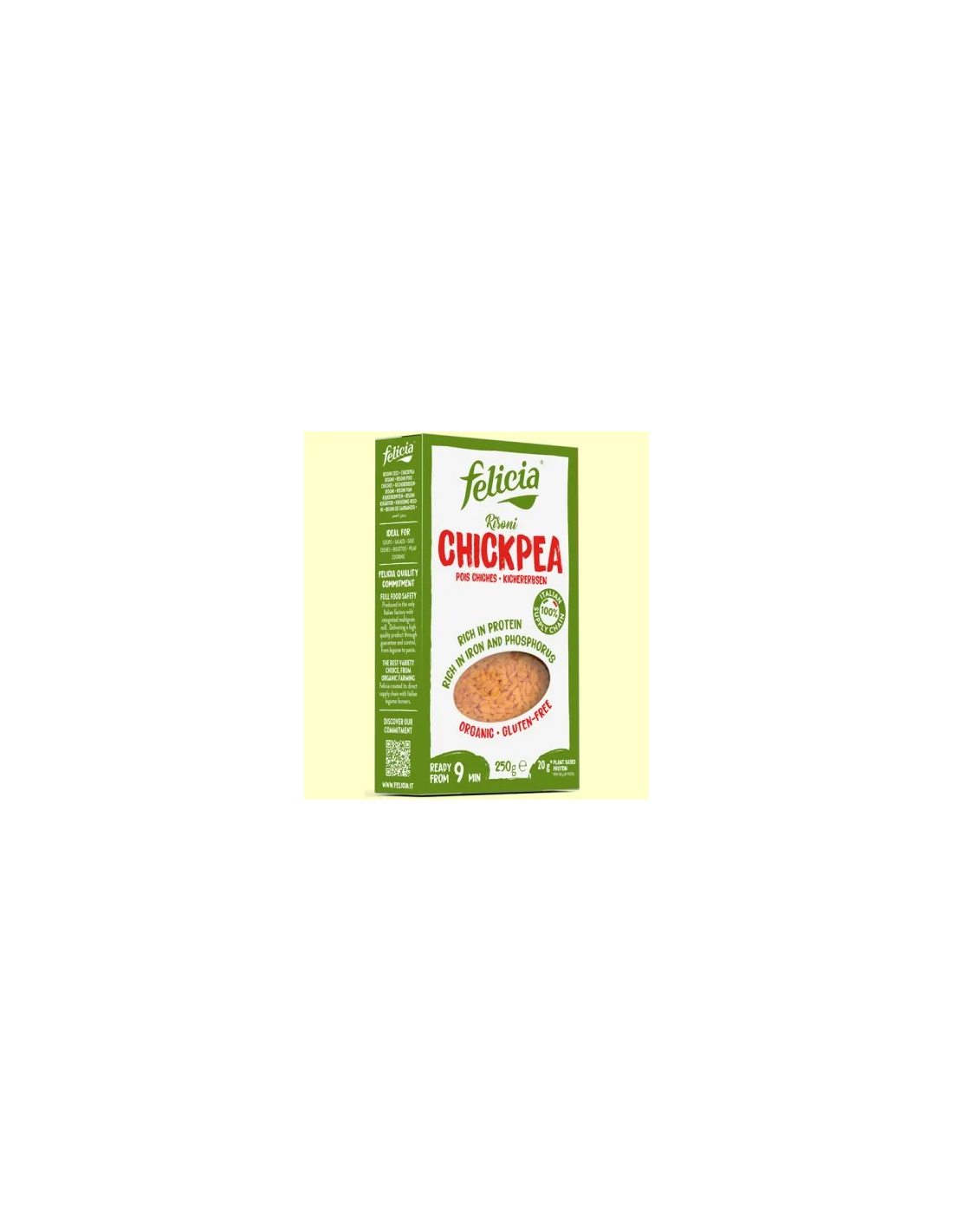 ¡Añade Ahora el Risoni De Garbanzo 250 gramos Bio Sg de Felicia a tu Carrito!