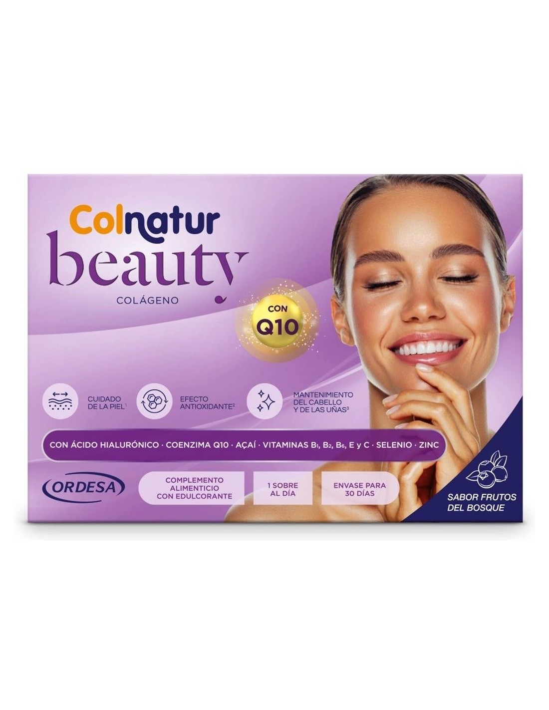 COLNATURSuplemento a base de nutrientes para la piel, pelo y uñas: la Vitamina B2, C, Zinc y Selenio contribuyen a la protección de las células contra el daño oxidativo. La Vitamina C ayuda a la formación normal de colágeno para el funcionamiento normal de la piel. La Riboflavina (B2) contribuye al mantenimiento de la piel en condiciones normales. El Zinc y selenio ayudan al mantenimiento del cabello y de las uñas en condiciones normales.