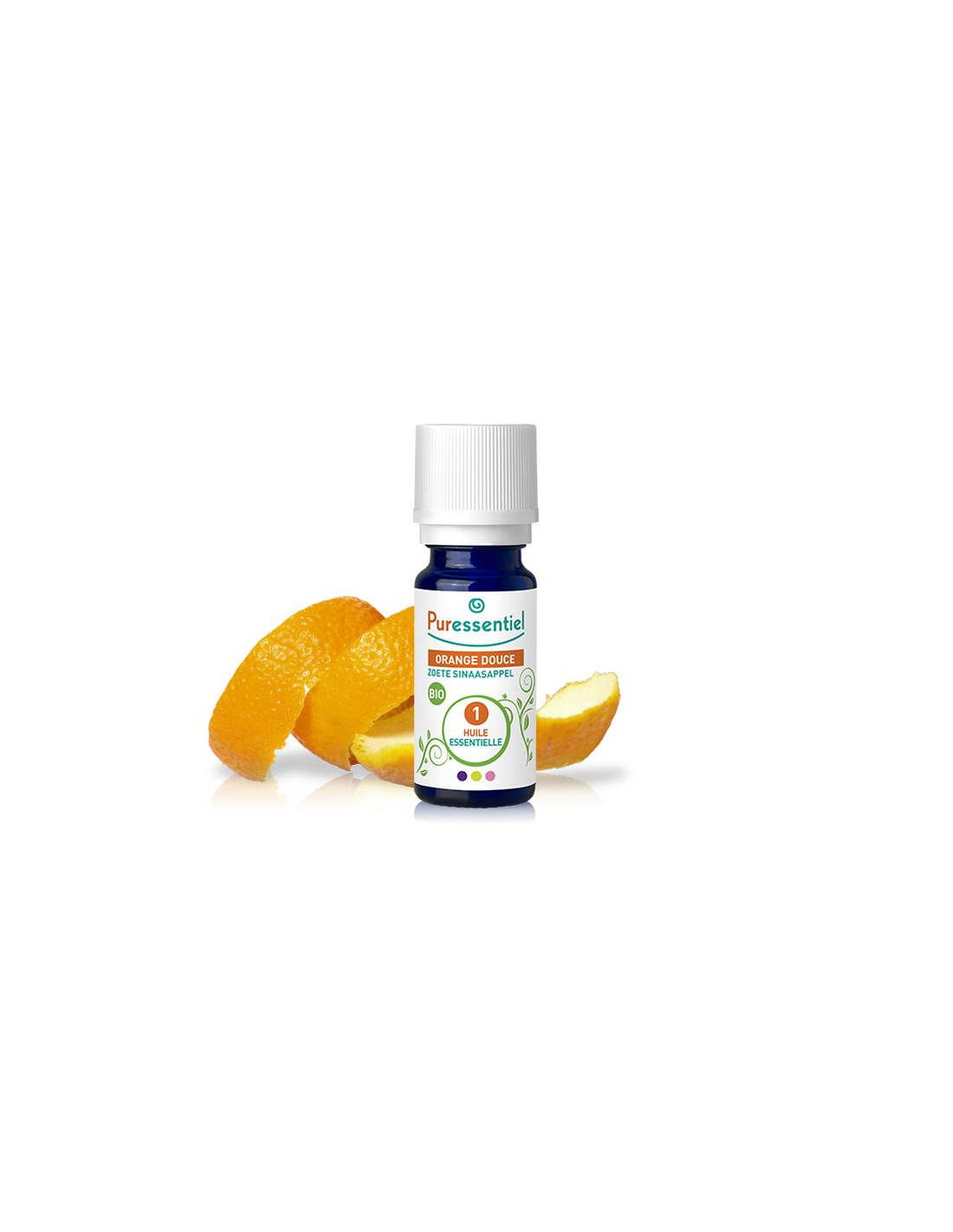 PURESSENTIELAceite esencial AEBBD (Aceite Esencial Botánica y bioquímicamente Definido). El aceite esencial de naranja dulce es afrutado y ligero.
