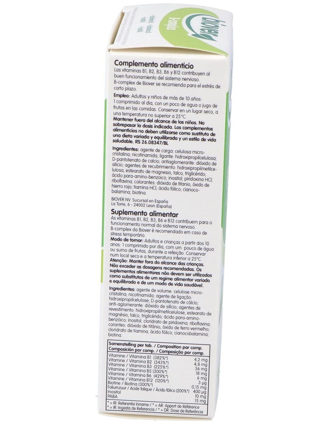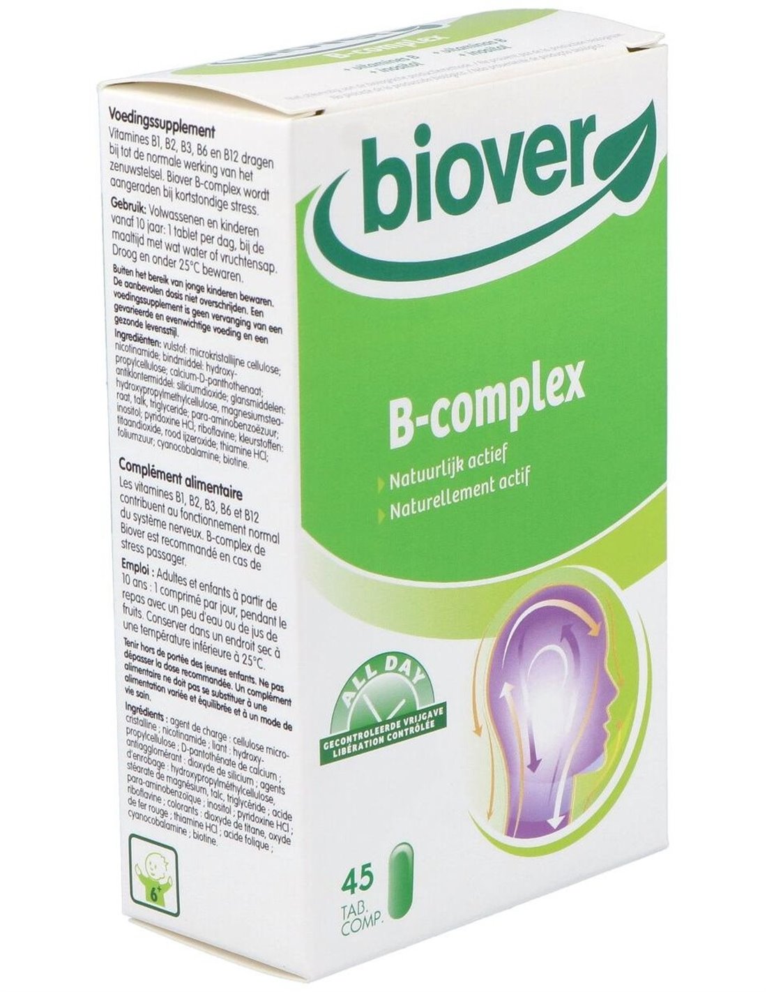 Complemento alimenticio a base de vitaminas del grupo b para el buen funcionamiento del sistema nervioso. Recomendado especialmente para el estrés de corto plazo. Contiene vitamina B1, B2, B3, B5, B6 y B12.