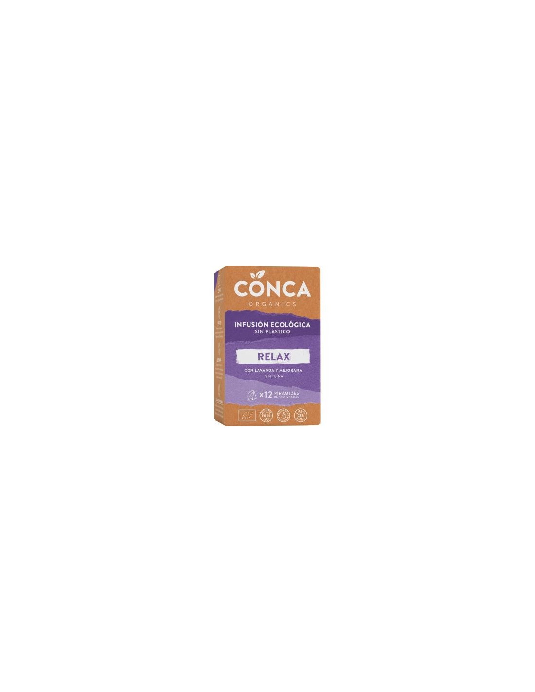 Relajante infusión con lavanda y mejorana. Pirámides reinfusionables. Sin teína. Caja de cartón reciclado y bolsa 100% compostable.